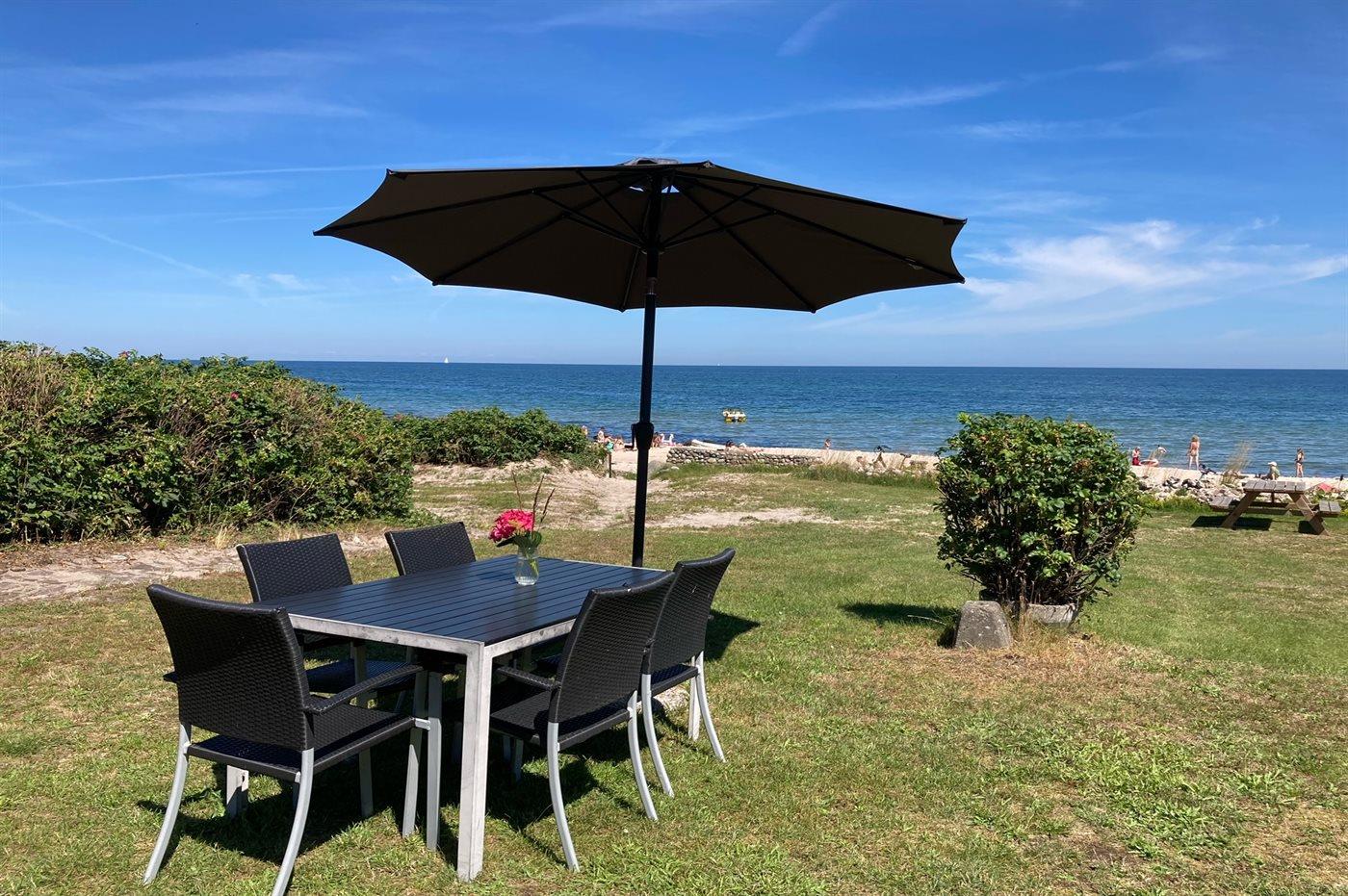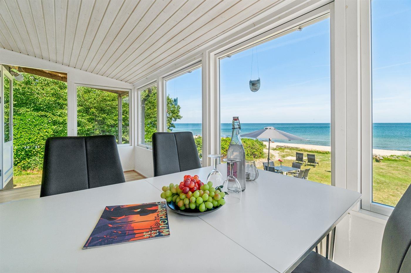 Hyggeligt sommerhus med direkte havudsigt og udestue tæt på stranden i Sandkås.