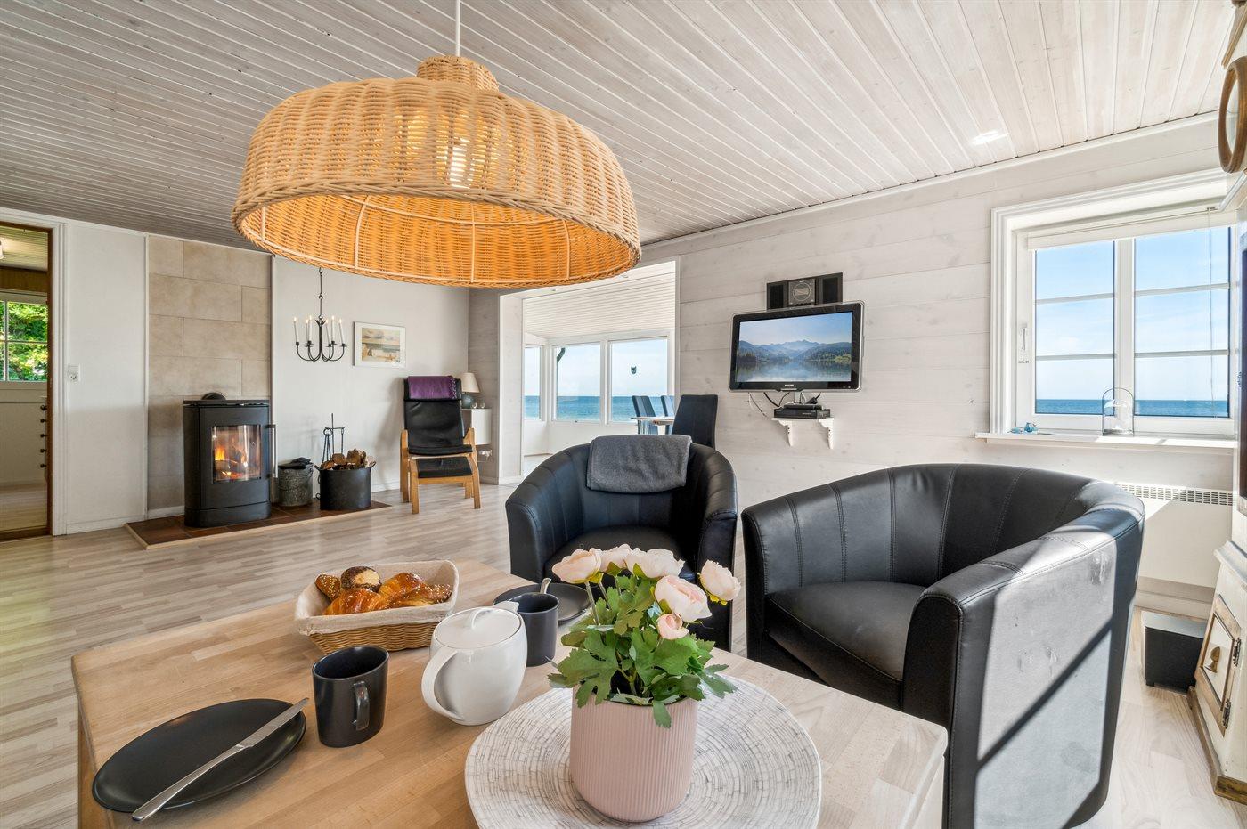 Især er det en nydelse at sidde og følge havets bevægelser og forandringer fra den lyse og hyggelige udestue. Huset er pænt møbleret, og de lyse gulve giver et lyst interiør.