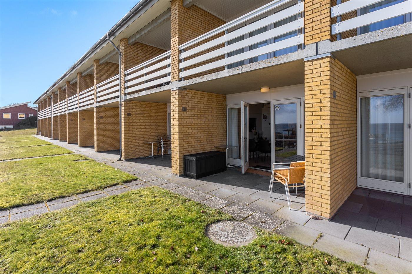 Lys ferielejlighed med havudsigt og overdækket terrasse tæt på badestrand i Sandkås.