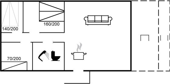 Der er i alt 3 soveværelser. Sovepladserne fordeler sig på: 4 sovepladser i dobbeltsenge. 1 soveplads i sovesofa (enkelt).