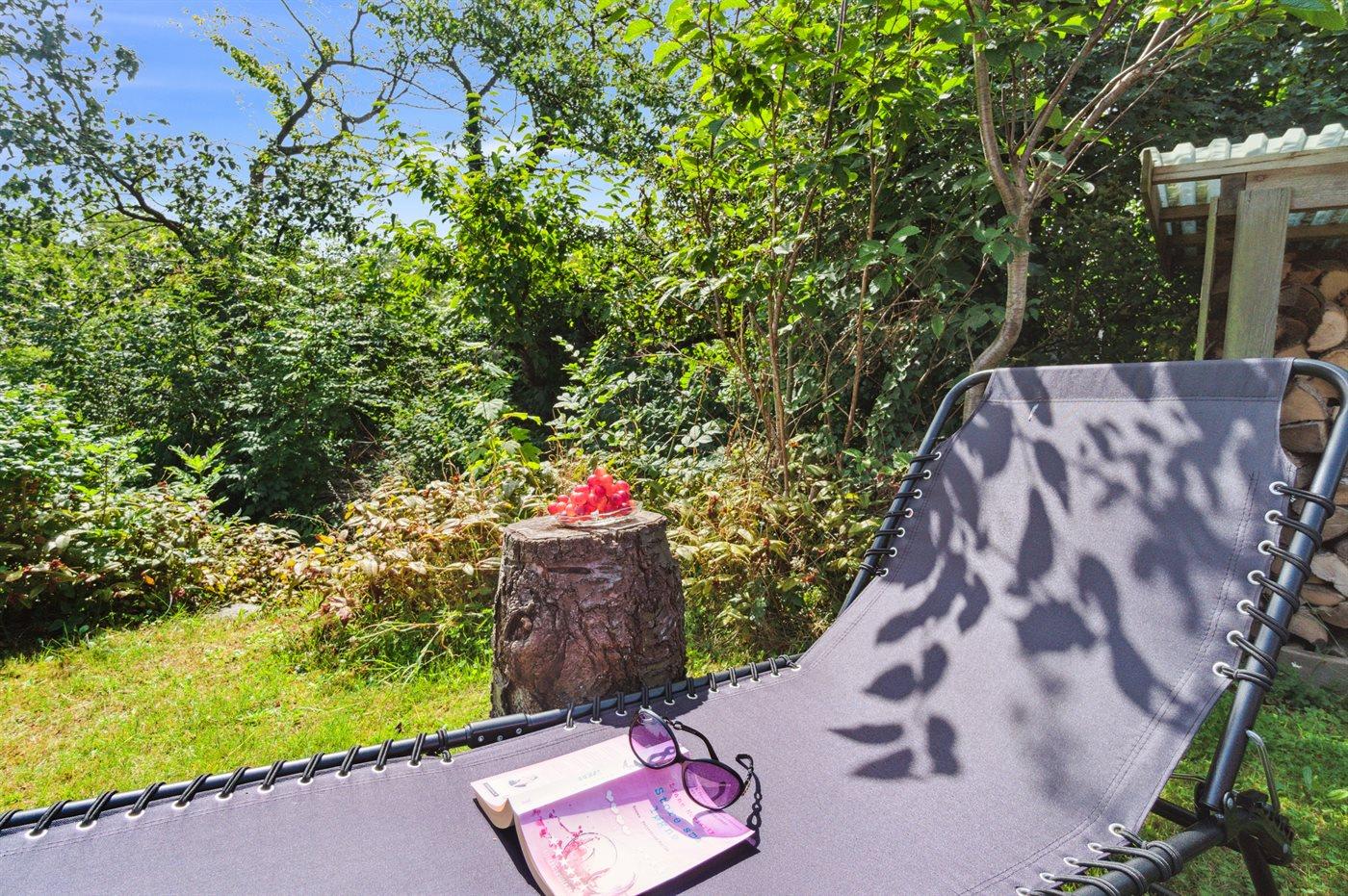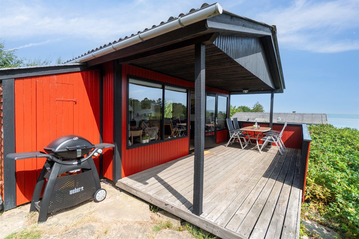 Charmerende sommerhus med havudsigt og hyggelig terrasse nær Sandkås strand.