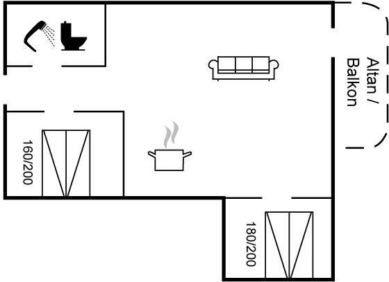 Ferielejligheden egner sig til 4 personer. Ferieboligen er på 54 m² og er bygget i 1960. I 2007 gennemgik ferieboligen en renovering. Det er ikke tilladt at medbringe husdyr. Ferieboligen er udstyret med energibesparende luft til luft varmepumpe. Der er gulvvarme i stuen. Der er gulvvarme i alrummet. Ferieboligen har vaskemaskine. Tørretumbler. Frysekapacitet på 30 liter.