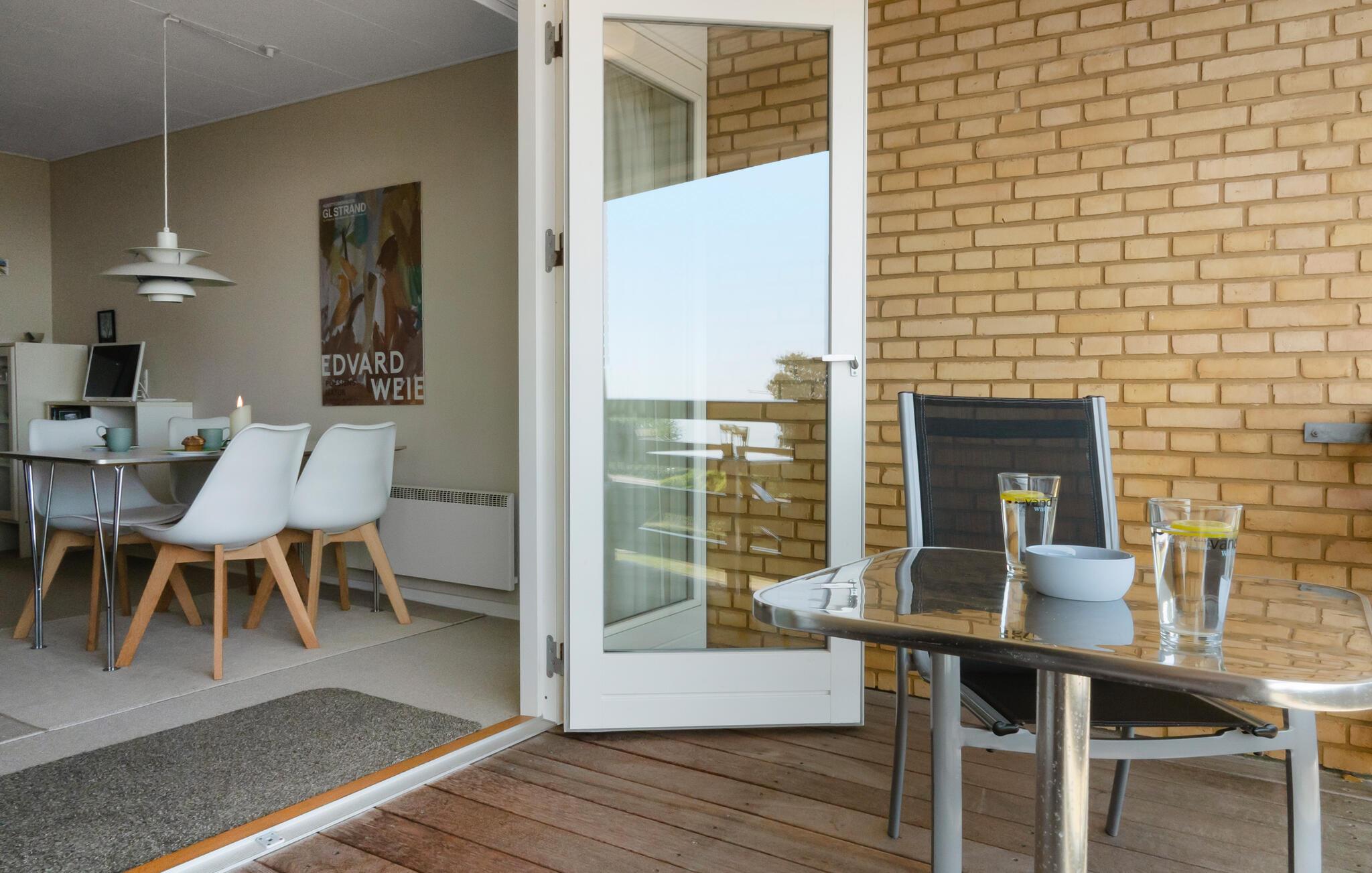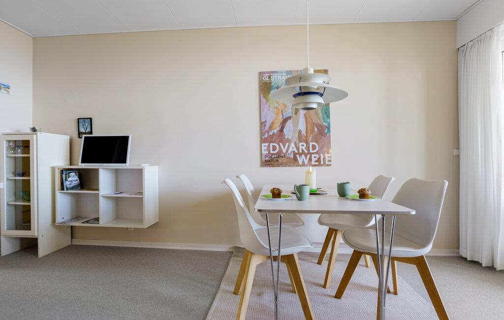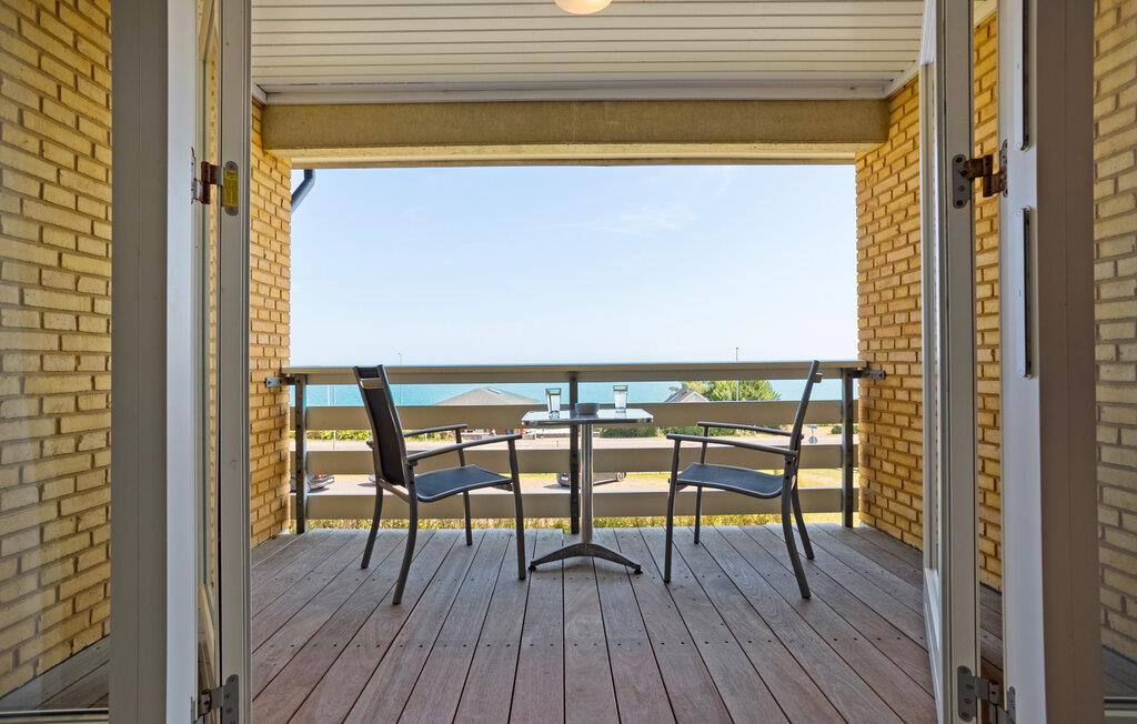 Komfortabel etværelses ferielejlighed med smuk havudsigt og terrasse nær stranden i Allinge på Bornholm.