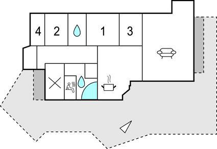 Badeværelse (nr. 2) - WC. Varmt og koldt vand. Bruser