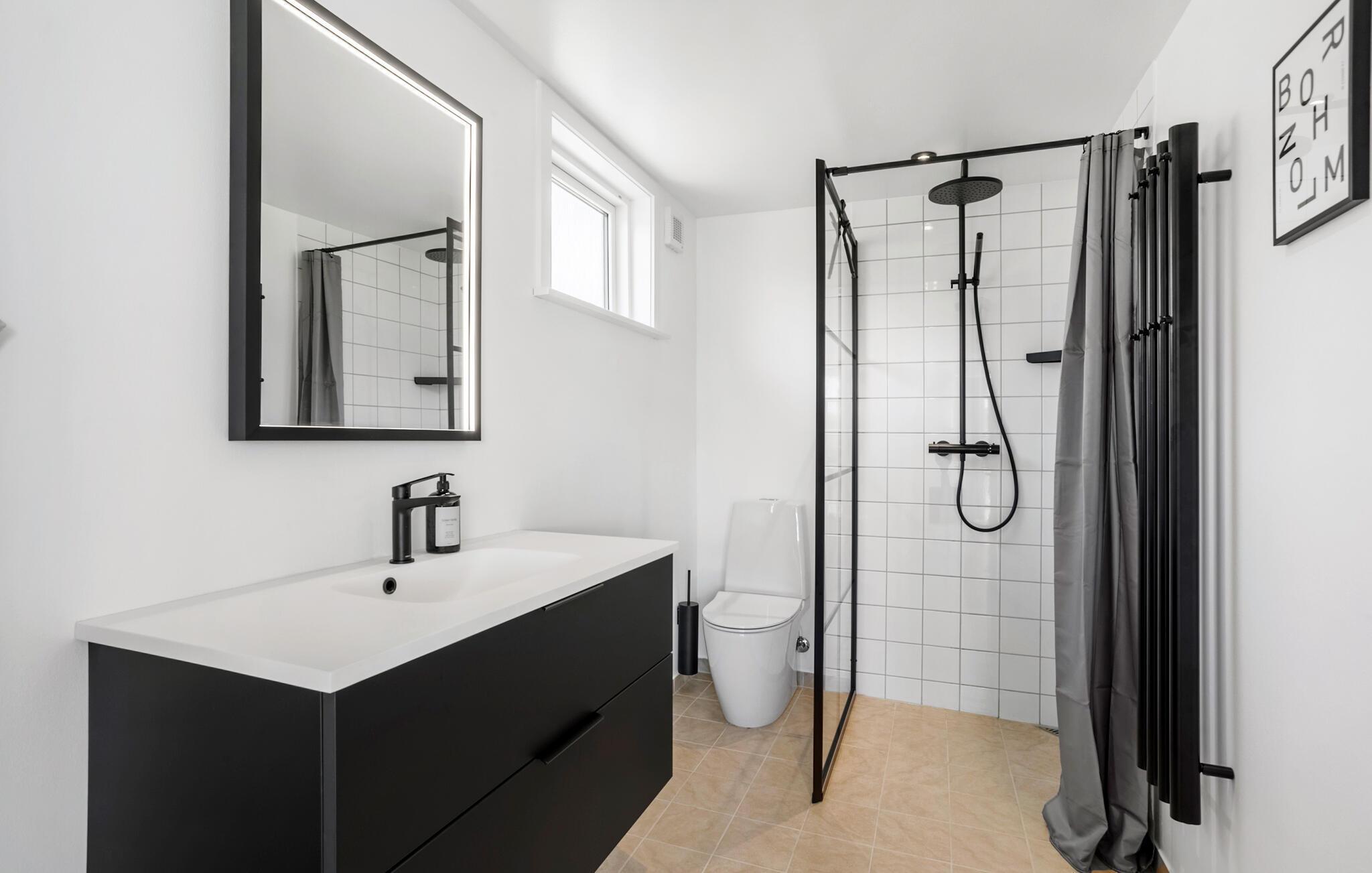 Badeværelse (nr. 1) - WC. Varmt og koldt vand. Bruser