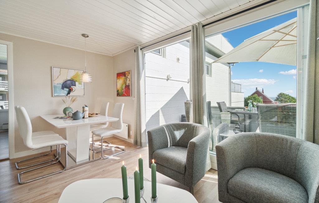 I får en førsteklasses beliggenhed i denne stilrene lejlighed, som blot ligger 75 meter fra stranden i Sandkaas. Stuen får et dejligt stort lysindfald fra vinduerne ud mod terrassen, hvor I kan kigge ned til havet. Efter en lang dag med spændende udflugter er det skønt at vende hjem til lejlighedens flotte faciliteter og nyde freden og roen, inden det igen går løs. Køkkenet er lækkert og moderne, så her kan I give jer god tid til hyggelige madlavningsprojekter.