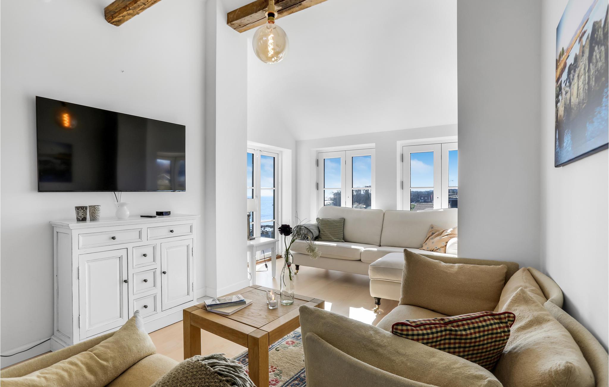 Glæd jer til denne ekstraordinært lækre ferielejlighed med vidunderlig havudsigt fra 2. sal. Kun 50 meter fra klippekyst og 350 meter fra en fin sandstrand.