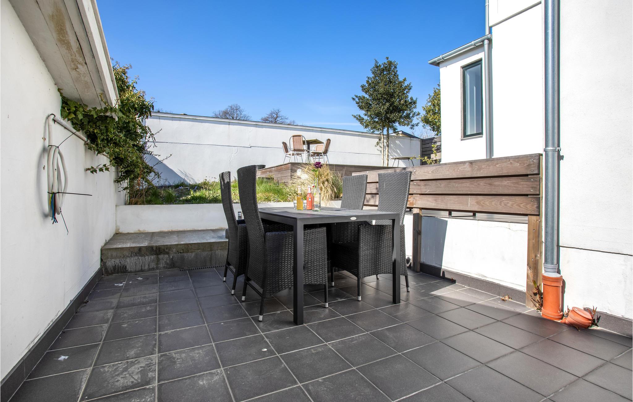 Uderammerne er også skønne, for her venter der en terrasse med havemøbler - og selvfølgelig en forrygende havudsigt. I har adgang til en gasgrill, som I deler med de andre lejligheder.