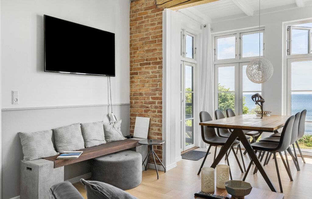 Moderne ferielejlighed med havudsigt, tæt på strand og klippekyst i naturskønne Sandkås på Bornholm.