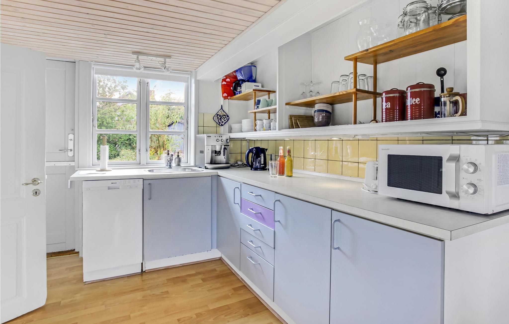 Huset ligger i et roligt kvarter i Tejn nær den dejlige sandstrand i Sandkås. I den lyse opholdsstue kan I tænde op i brændeovnen på kølige dage og give jer god tid til måltiderne omkring spisebordet. Udendørs venter en skøn fliseterrasse med havemøbler og en grill, så her er der lagt op til uforglemmelige aftener i de lyse nætters tid. Den store, flotte grund er meget unik og byder både på klipper og kig til vandet.