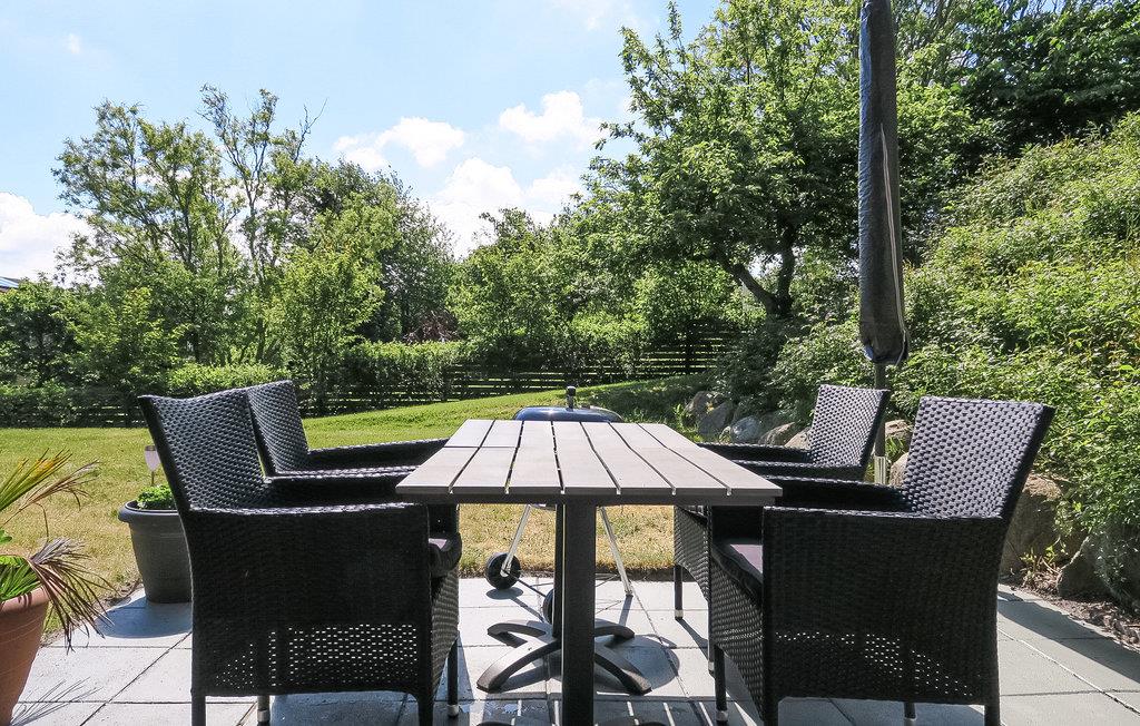 Fra stuen er der udgang til en skøn, delvist overdækket terrasse med havkig, havemøbler og grill. Der er også adgang til en lille fælles have, hvor børnene kan spille bold eller lege tagfat.