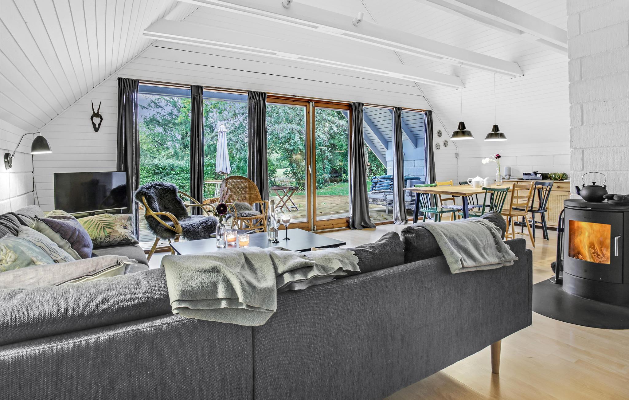 Glæd jer til dette yderst charmerende sommerhus, som byder på flotte rammer både indendørs og udenfor. Opholdsrummet er flot og interessant udformet med loft, der går til kip og en hems med sovepladser. Her kan I hygge jer sammen på kølige aftener, mens ilden knitrer i brændeovnen.