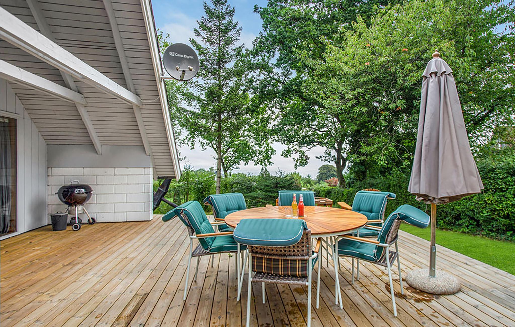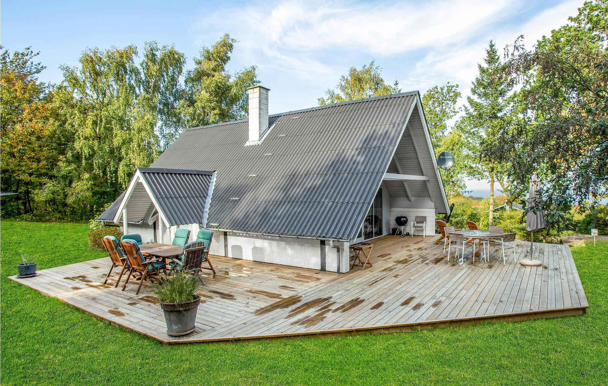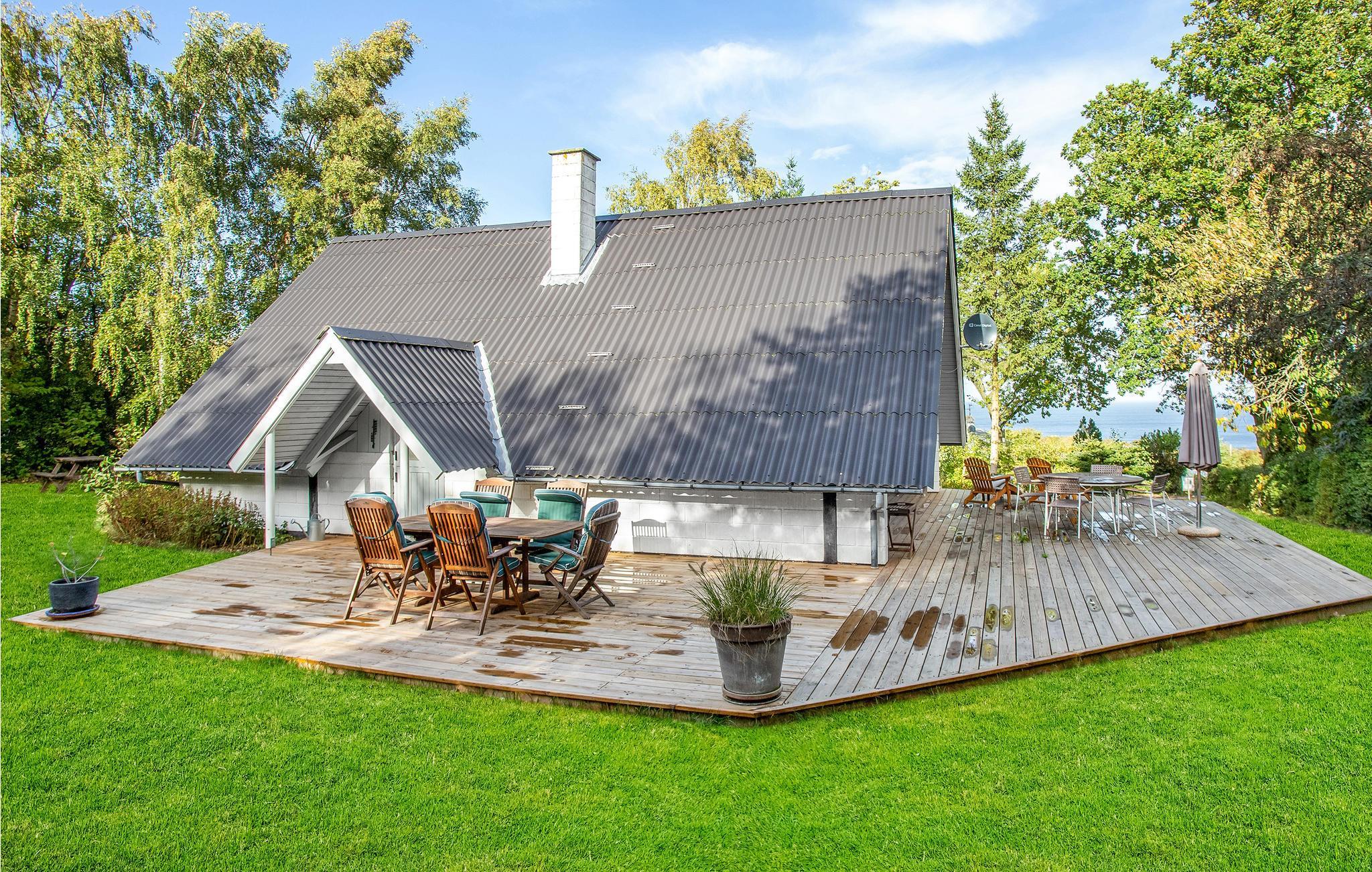 Når solen er fremme, kan I rykke selskabet ud på den store terrasse og tilberede en god ret på grillen. Der er overdækning, hvis I foretrækker skygge, og så kan børnene muntre sig i haven, hvor der er gynger.