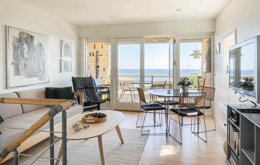 Virkelig lækker og smagfuldt indrettet ferielejlighed i to plan og med havudsigt. Lejligheden er del af en rækkehusløsning med 100 meter til sandstrand og smukke klipper.