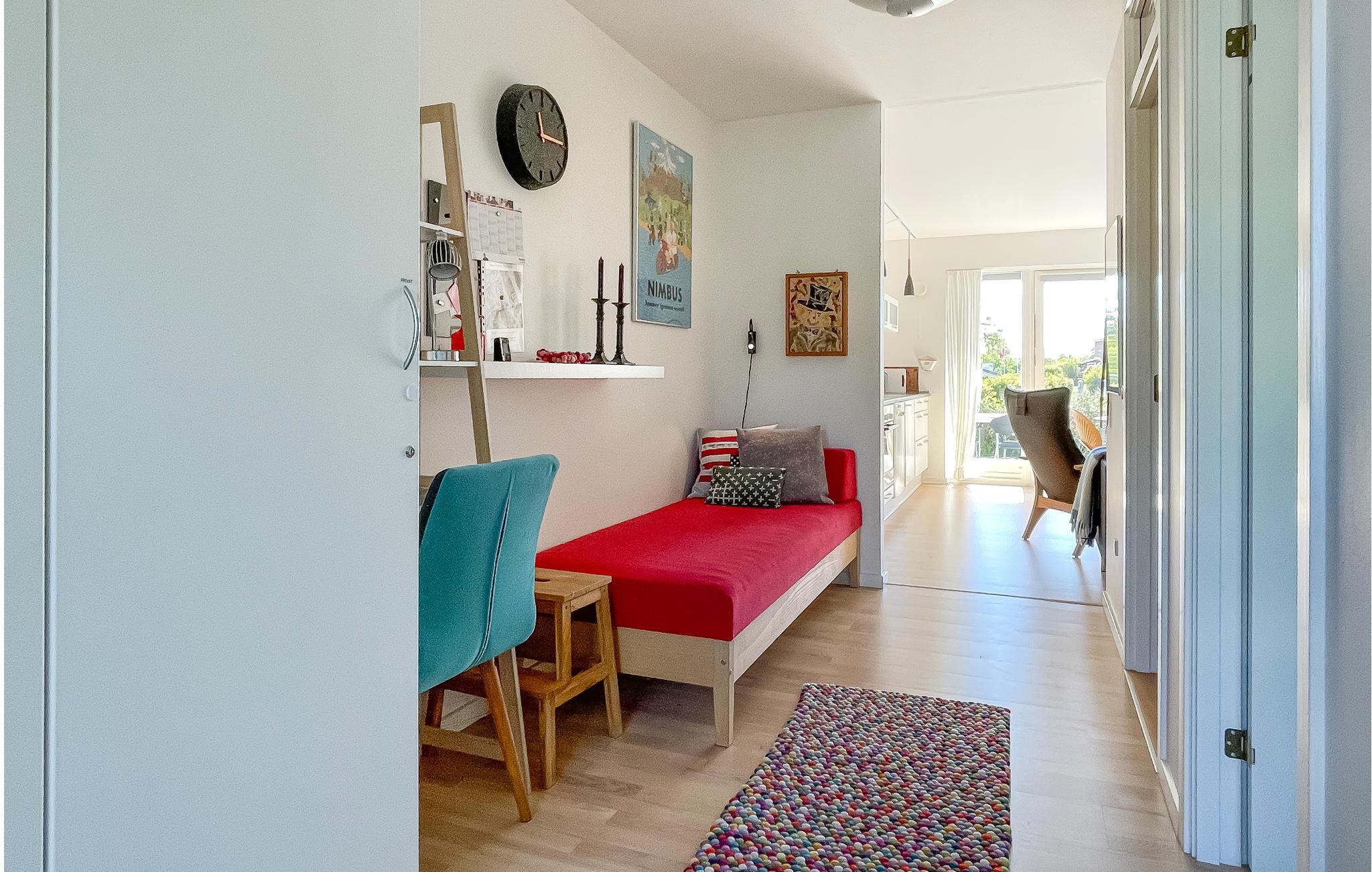 Lejligheden fungerer som en herlig base til en ferie med mange strandture og masser af sightseeing på øen. Den er skøn at vågne op i og tilbringe en langsom morgen med god morgenmad på terrassen, inden I tager på stranden eller ud for at opleve en eller flere af øens mange attraktioner. Lejlighedens hjerte er den kombinerede opholds- og spisestue med åbent køkken, hvor I kan flade ud i komfortable møbler og se en god film som afslutning på en aktiv feriedag. I stuen er der en dobbelt sovesofa (140 cm), og entreen er udstyret med en lille arbejdsplads og en sovebriks. Der er behagelig gulvvarme på badeværelset.