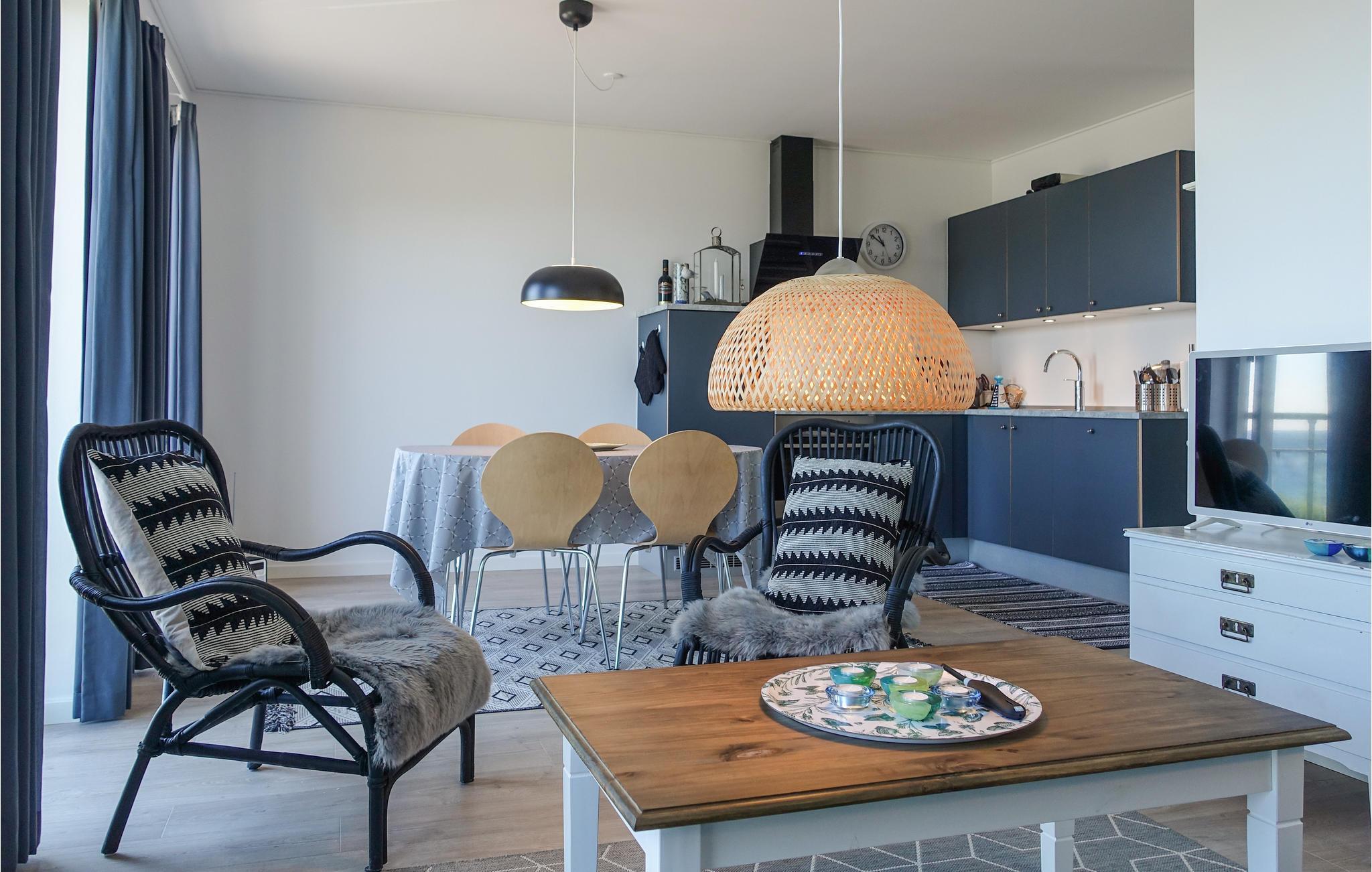 Denne velindrettede lejlighed er perfekt til en familie eller en gruppe venner på ferie. Her har I mulighed for at opleve Nordbornholm helt tæt på og tilbringe en god del af timerne ved vandet, for der er kun en halv kilometer til en flot sandstrand. I kan desuden se frem til et indbydende opholdsrum til hyggelige aftener med brætspil og rødvin. Der er tilmed udgang til terrasse med havemøbler, hvor I kan sætte jer med en god bog i solen. Der er også overdækning, så I kan trække ind i skyggen, når I får lyst. Hvis I er i humør til at grille en aften, har I adgang til fællesgrill, som deles med nogle af de andre lejligheder.