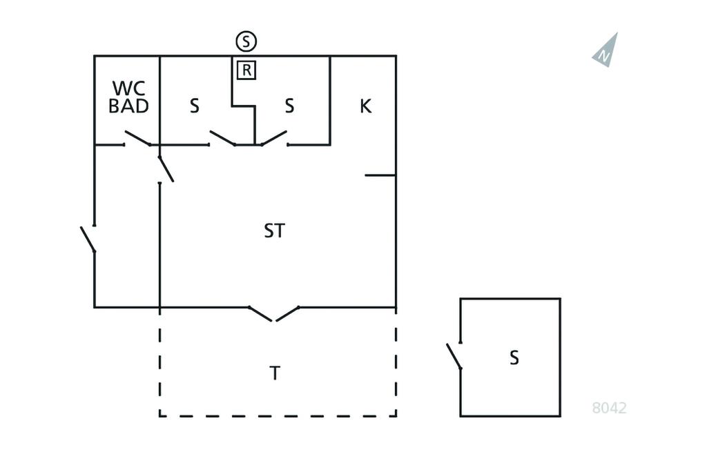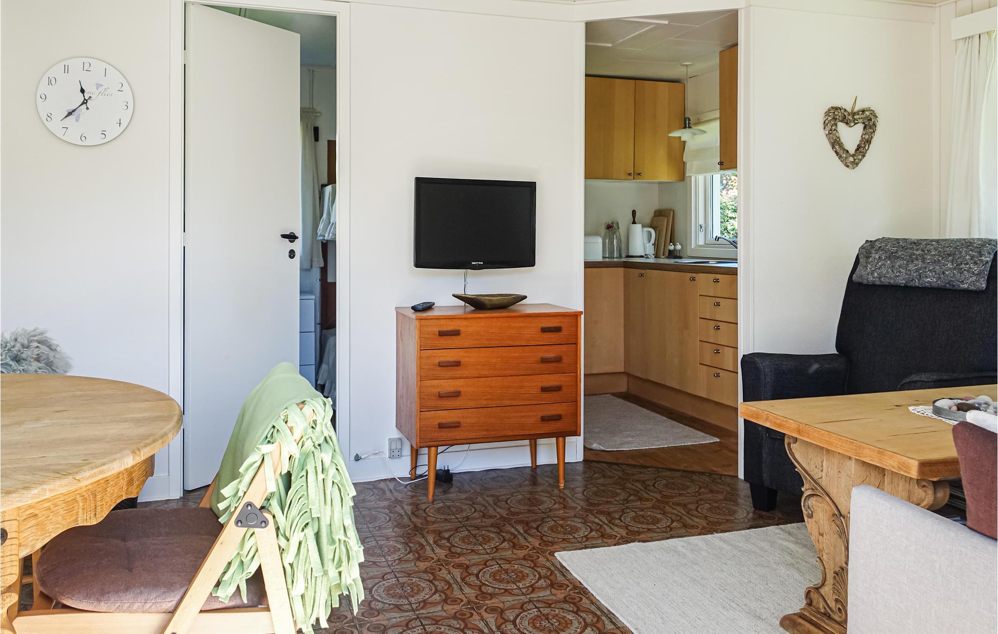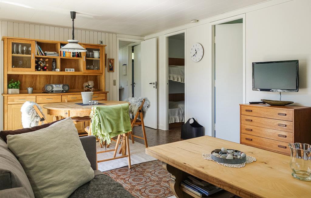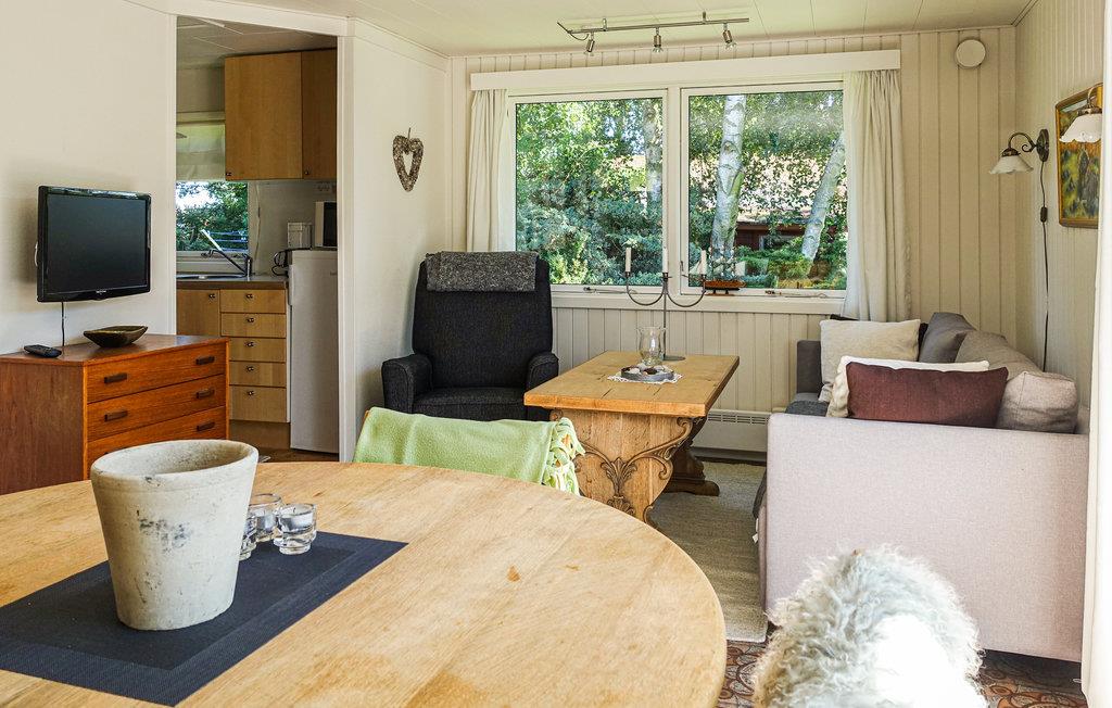 Husets hjerte er den hyggelige opholdsstue med spiseplads og sofarrangement, hvor I kan se fjernsyn, høre radio eller musik og bare slappe af og hyggesnakke. I finder en vaskemaskine i entreen. Huset har et anneks (uopvarmet og ingen el) med en køjeseng med en bred underkøje.