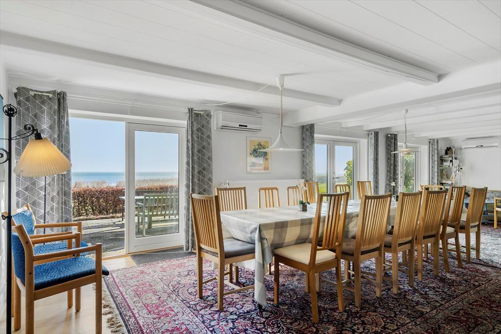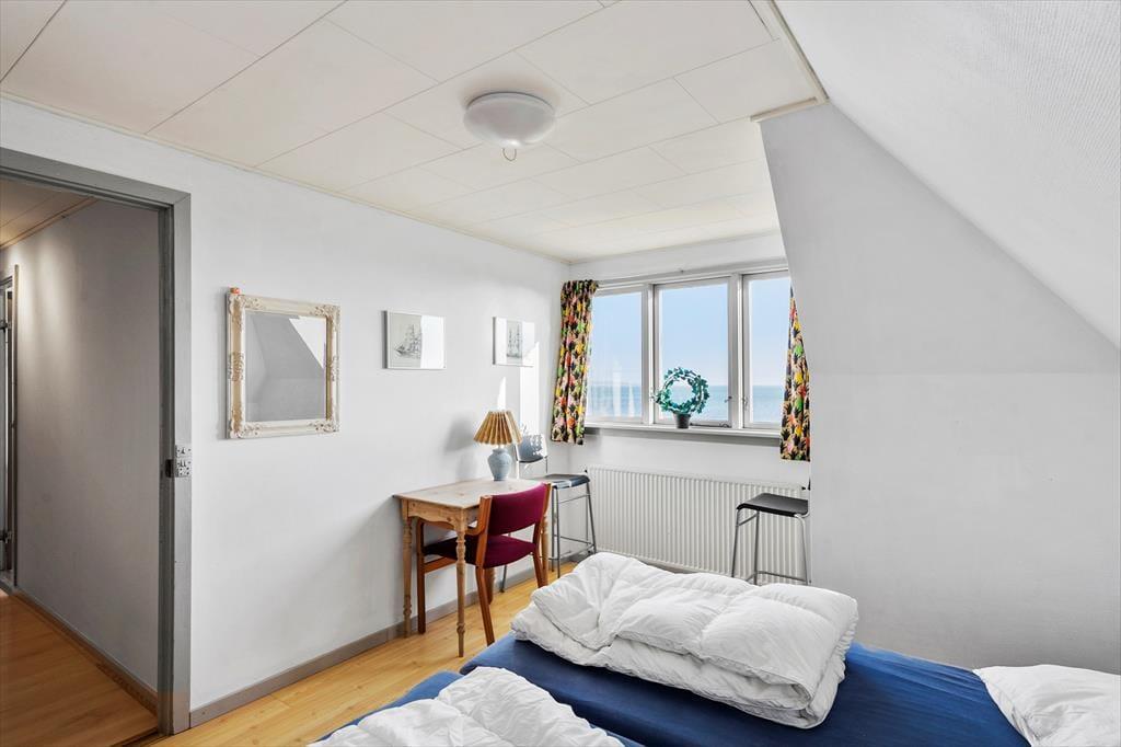 Her kan I være den store familie eller venner samlet og stedet indbyder til at komme helt ned i gear og slappe af i hinandens selskab. Huset er lyst og indbydende med store vinduespartier ud mod vandet. I stuerne finder I flere hyggelige sofagrupper og gode siddepladser. Her kan ungerne samles og spille brætspil eller se TV, imens de voksne tilbereder dagens måltider og får et glas vin eller en kop kaffe. Køkkenet er godt udstyret, med alt I skal bruge og på de lune dage, kan I blot åbne terrassedørene op og gå direkte ud på fliseterrassen og nyde udsigten imens I spiser sammen. I stueplan er der er desuden et dejligt soveværelse med dobbeltseng og direkte adgang til terrassen og et dejligt stort badeværelse med badekar, bruser, bidet, toilet, håndvask og håndvask i børnehøjde. På 1. sal er der hele 5 soveværelser at vælge imellem, alle har de havudsigt. Heroppe er der et nyere badeværelse med toilet, håndvask og bruseniche. Der er 2 trapper til 1. salen, den ene fra bryggerset og den anden fra stuen.