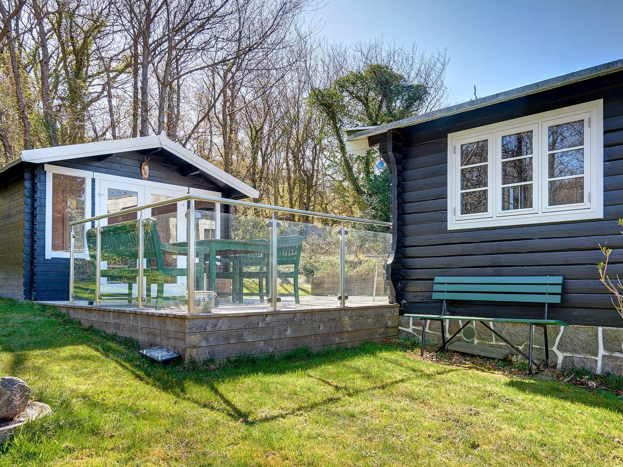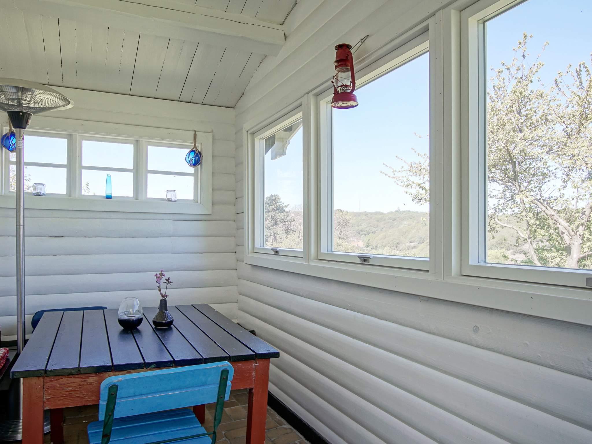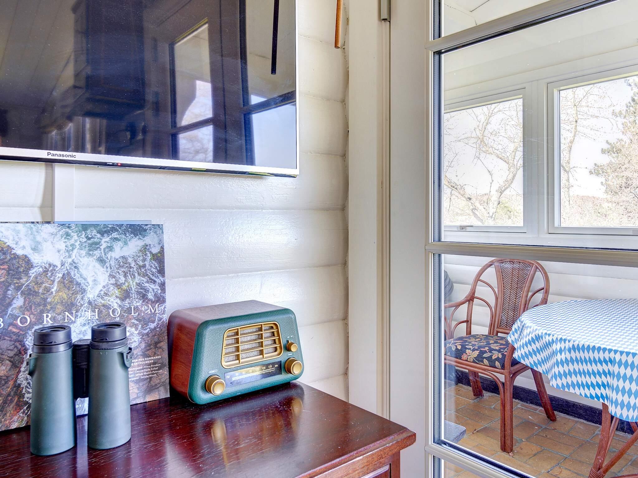 Godt indrettet sommerhus beliggende på stor ugenert naturgrund oven for det idylliske Sandvig. Fantastisk udsigt over Sandvigbugten, Hammerfyret og Hammerknuden. Stor træterrasse med udsigt over området. Lille overdækket terrasse med udgang fra stuen.