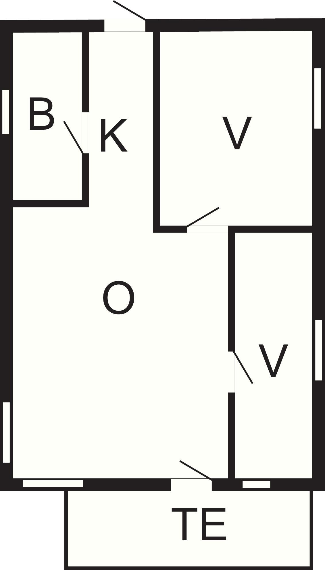 1 Opholdsstue: Brændeovn, stereoanlæg med cd, tv