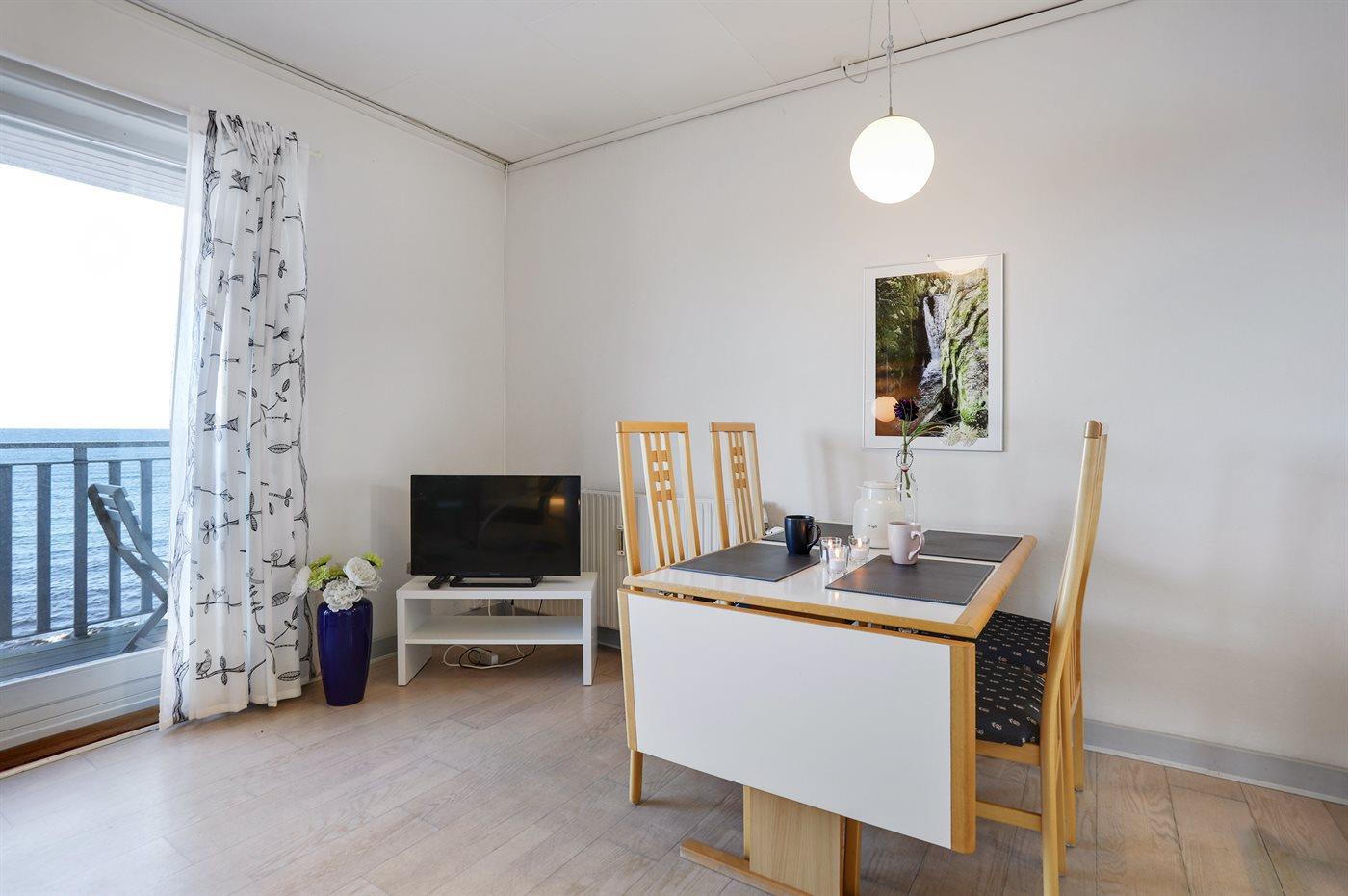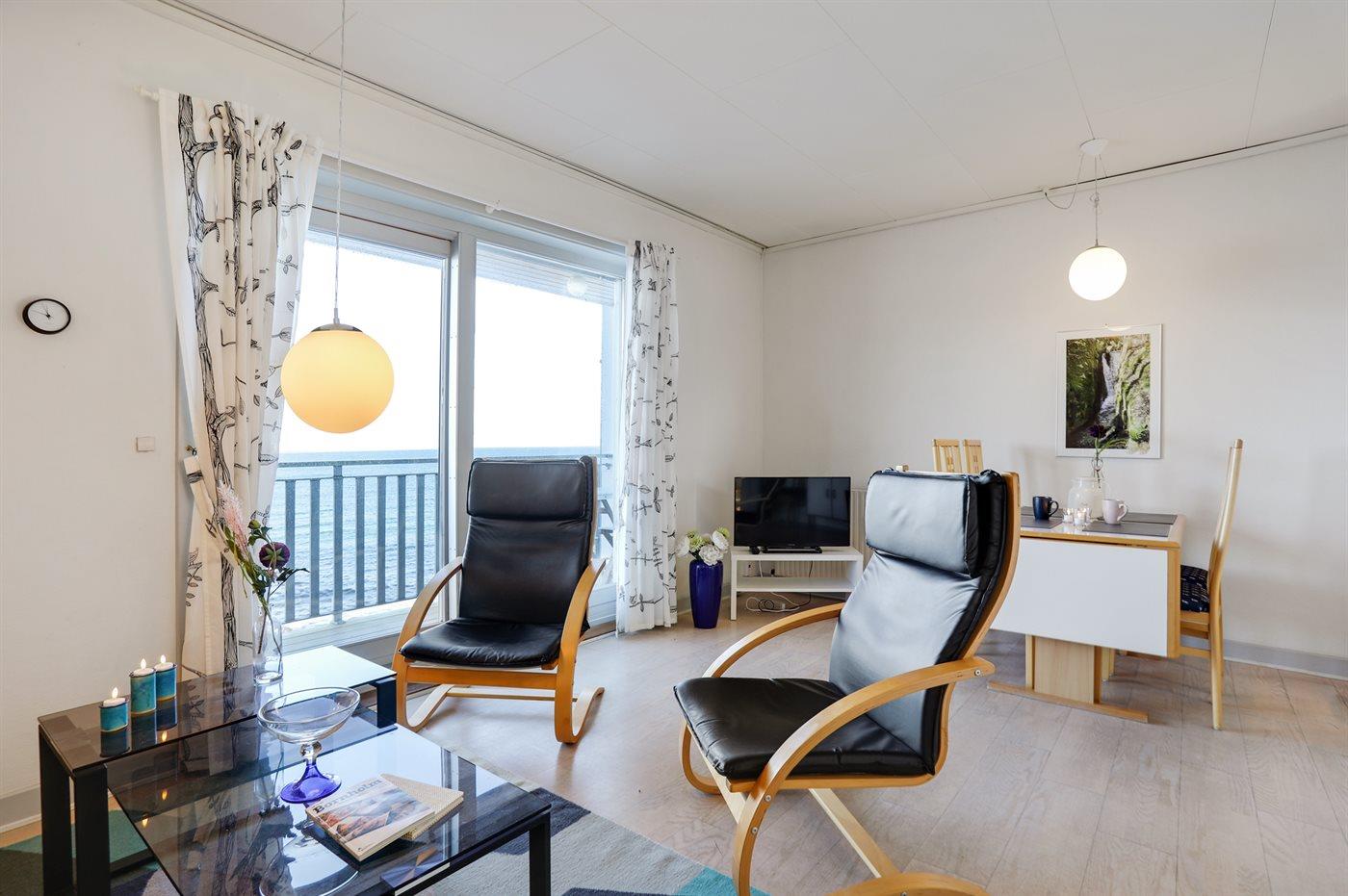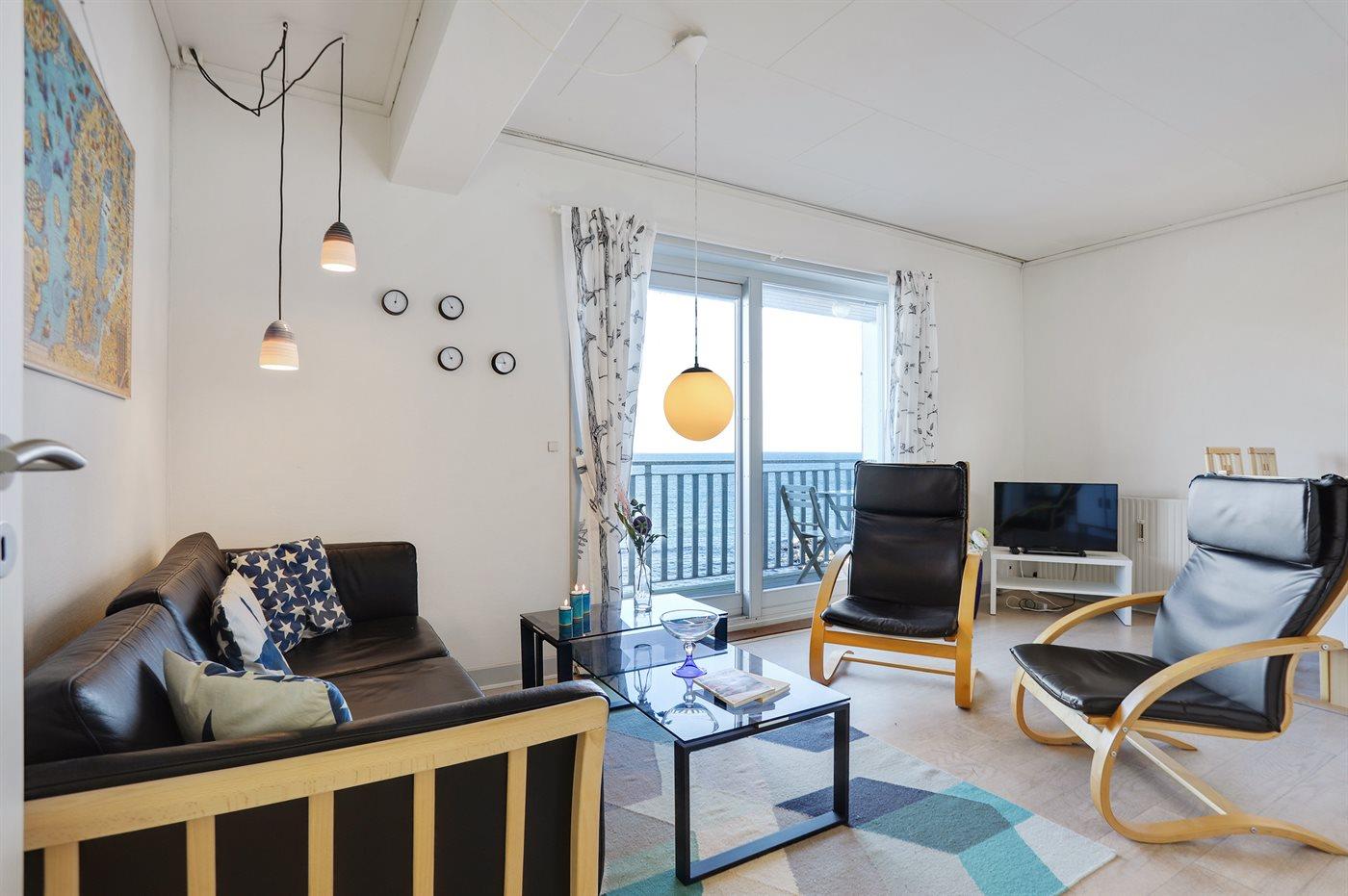 Lys og moderne ferielejlighed i første række med havudsigt og adgang til sandstrand ved Sandvig.