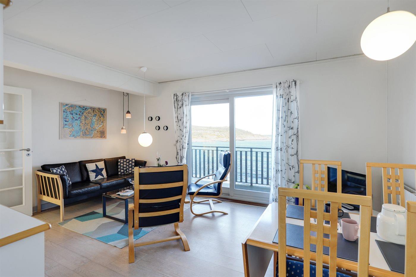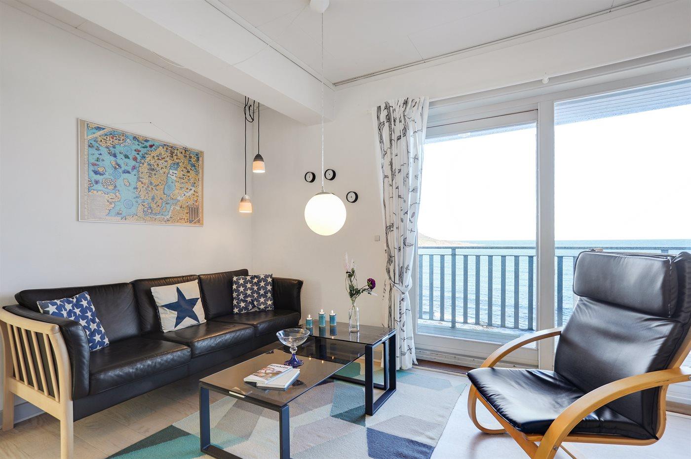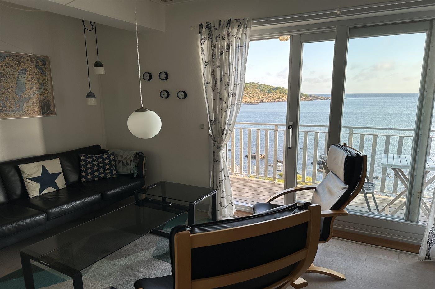 Lys og moderne ferielejlighed i første række med havudsigt og adgang til sandstrand ved Sandvig.