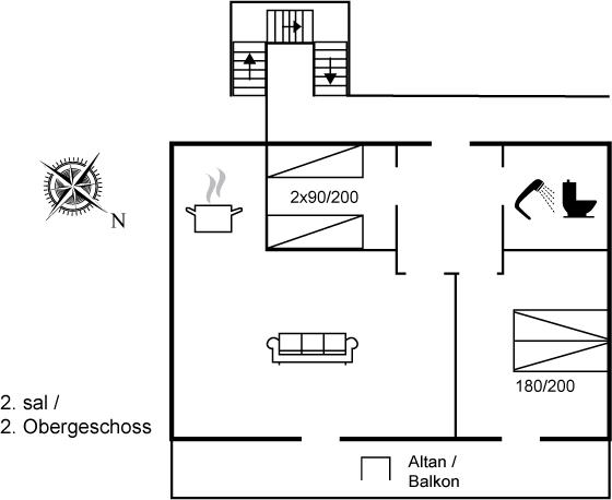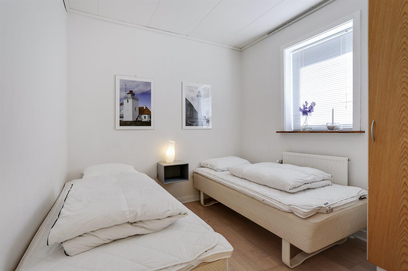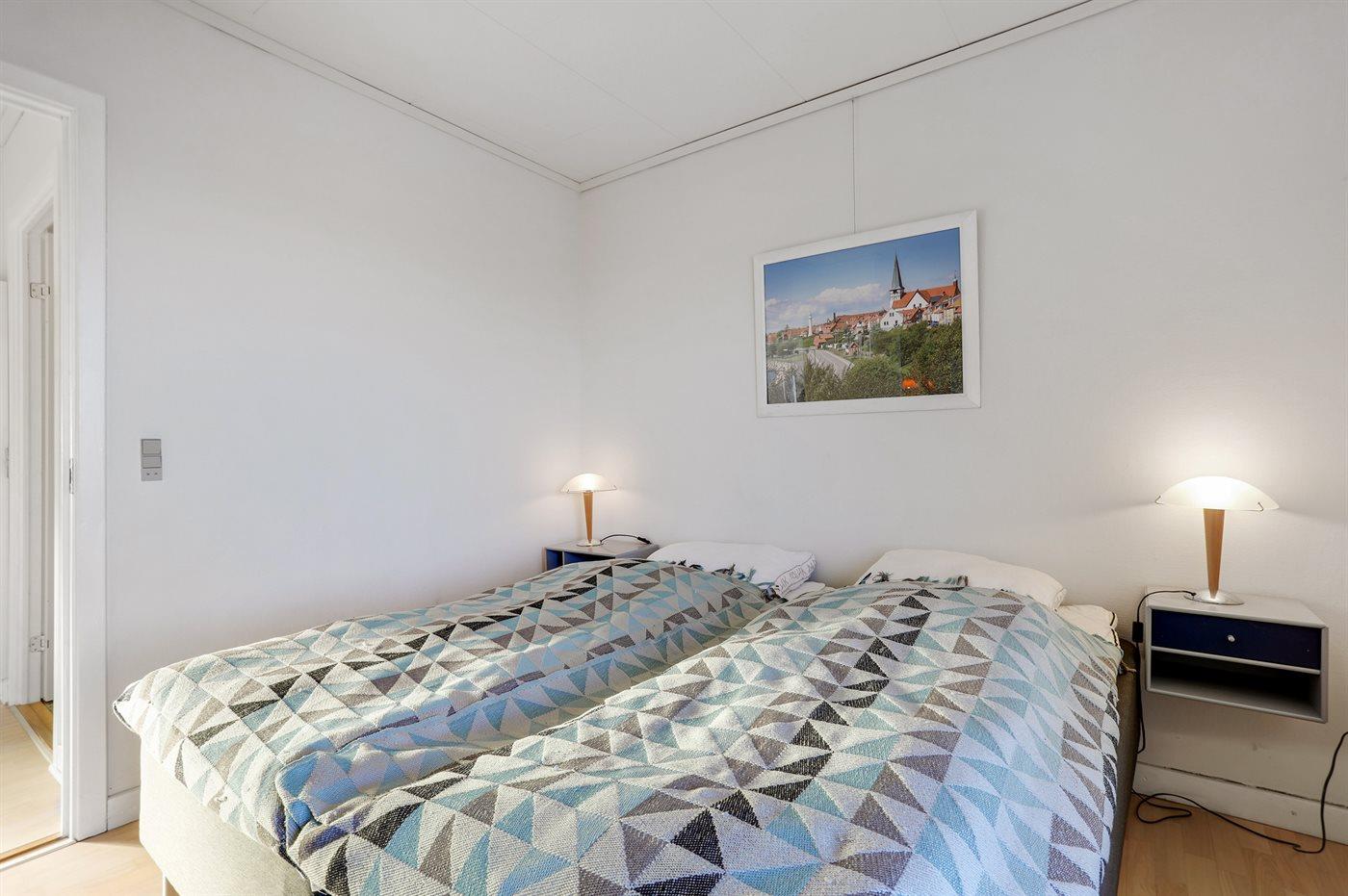 Der er i alt 2 soveværelser. Sovepladserne fordeler sig på: 2 sovepladser i dobbeltseng. 2 sovepladser i enkeltsenge.