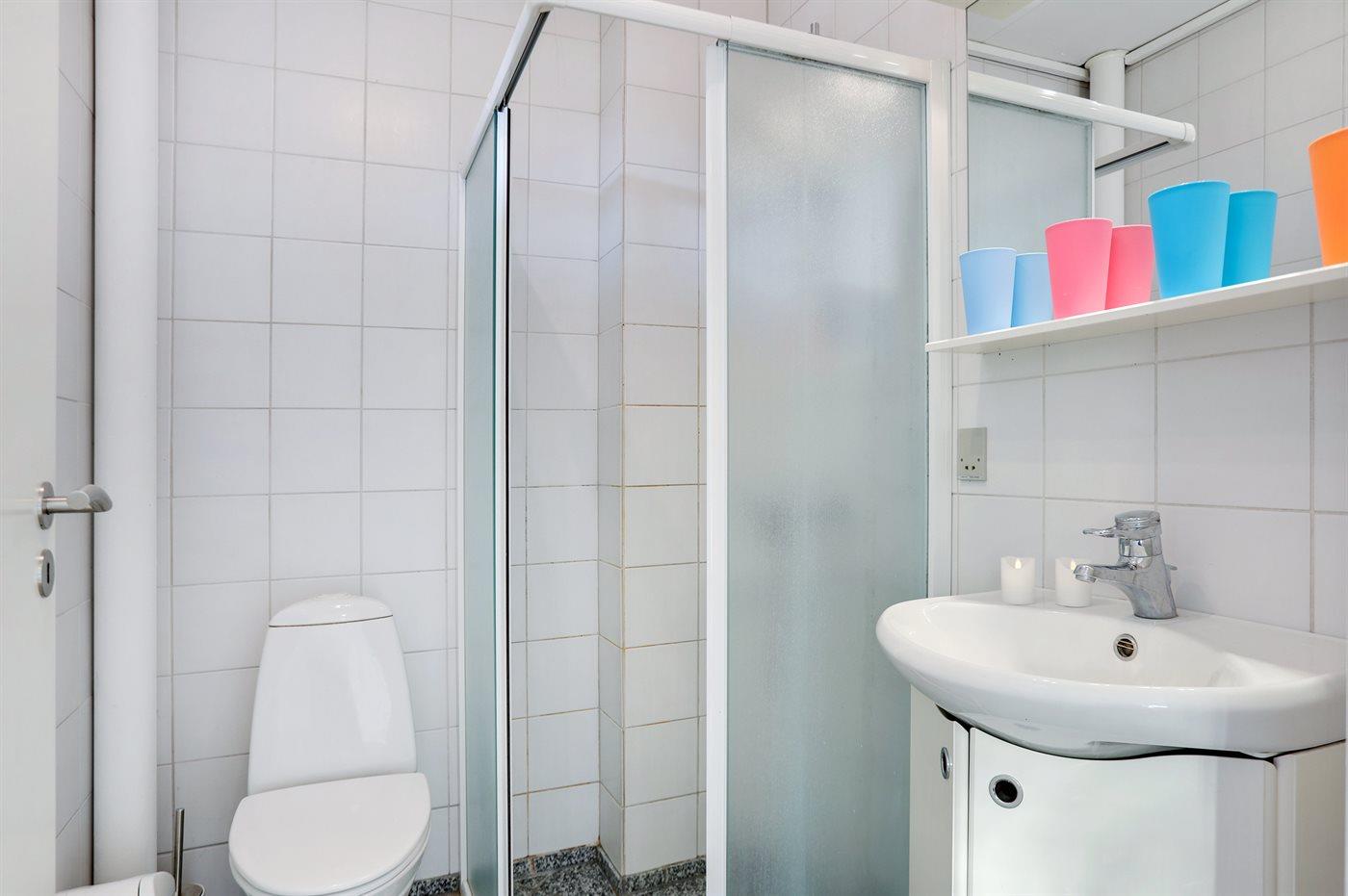 Der er 1 badeværelse med bruseniche og 1 toilet.. Der er gulvvarme på 1 badeværelse.
