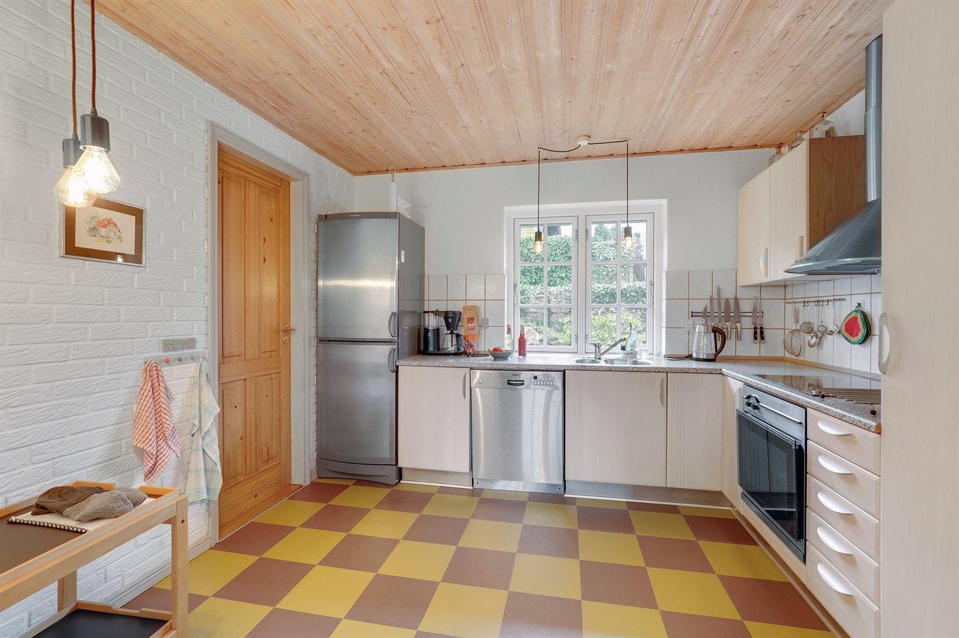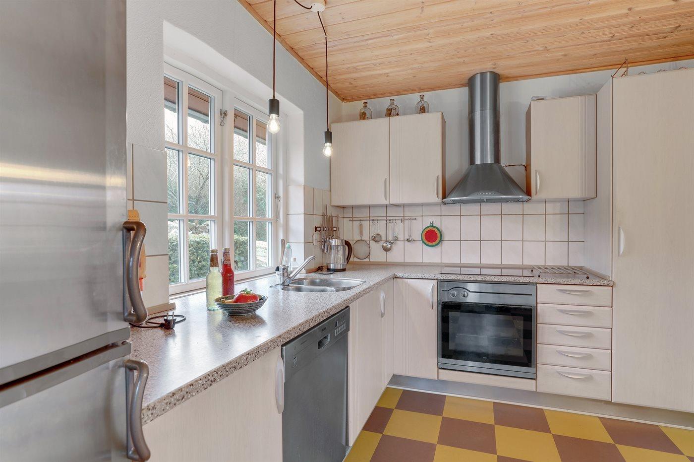 Køkkenet er udstyret med 1 køleskab. Der er 4 induktionskogeplader, varmluftovn samt opvaskemaskine.