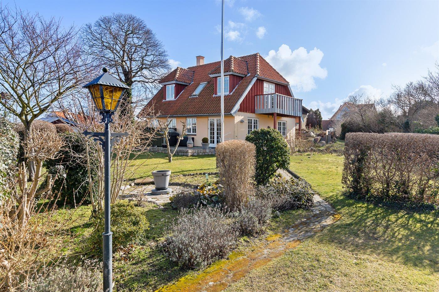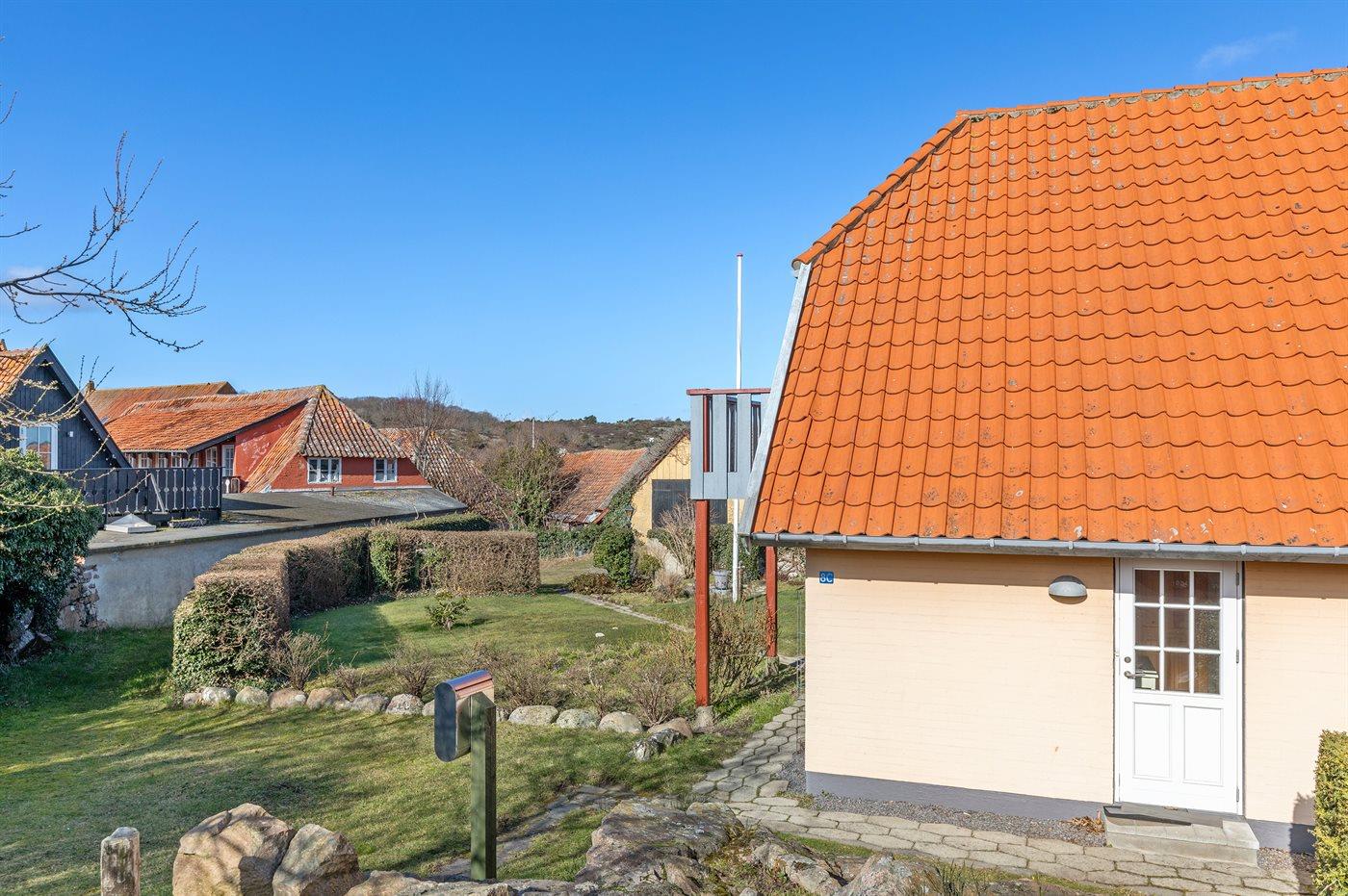 Et særdeles velbeliggende feriehus midt i Sandvig - nær sandstranden, de store naturområder med Hammerknuden, Opalsøen og Langebjerg.