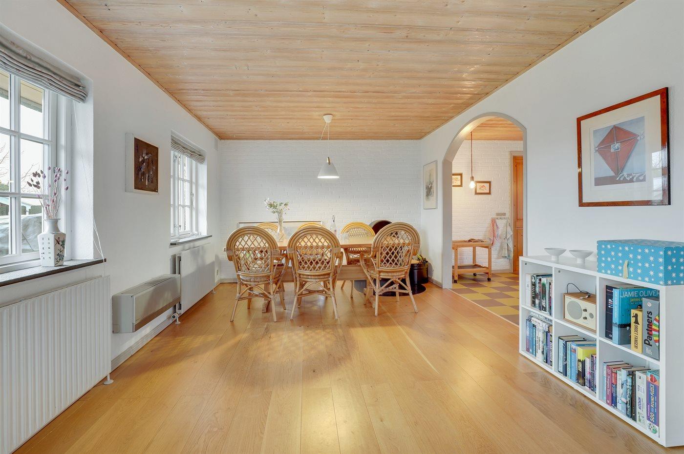 Huset er et murstenshus og det er indrettet i to plan, hvor soveværelserne befinder sig på 1. sal.