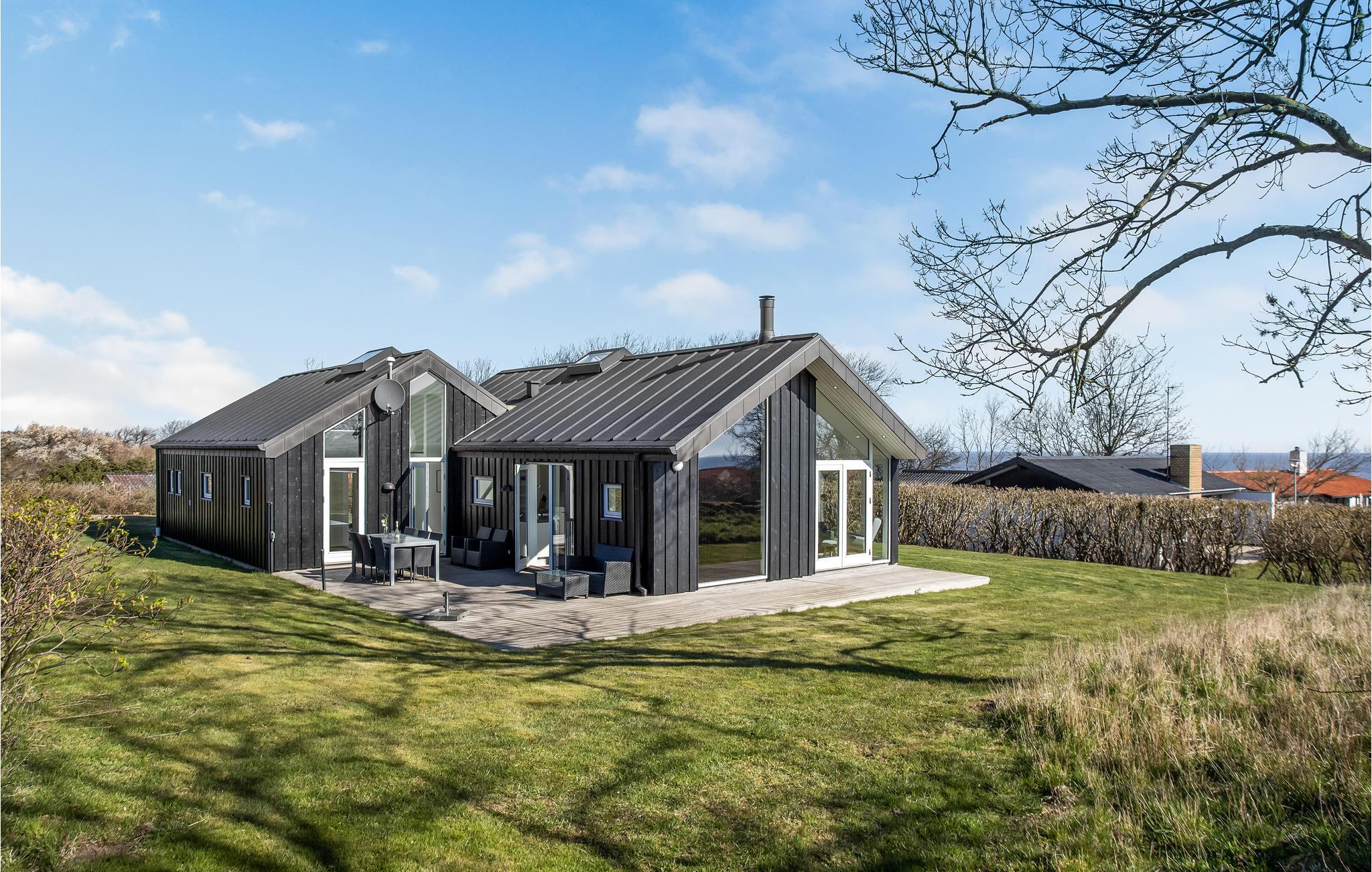 Arkitekttegnet feriehus med havudsigt, moderne indretning og stor terrasse tæt på natur og strand i Sandvig.