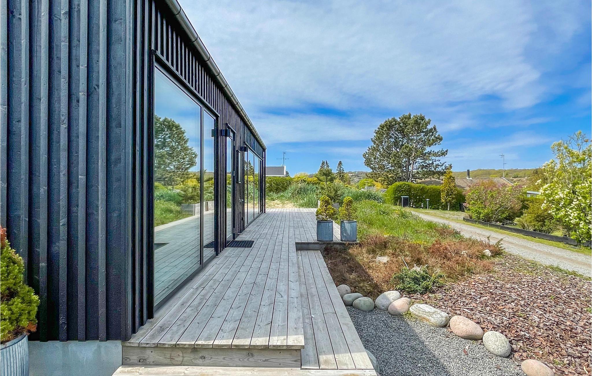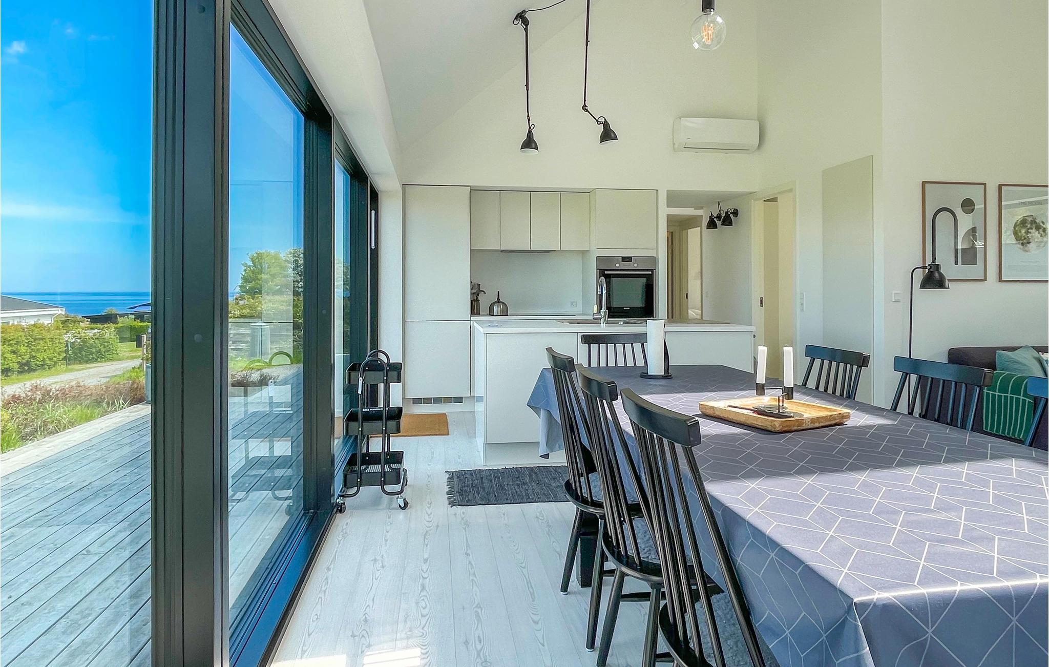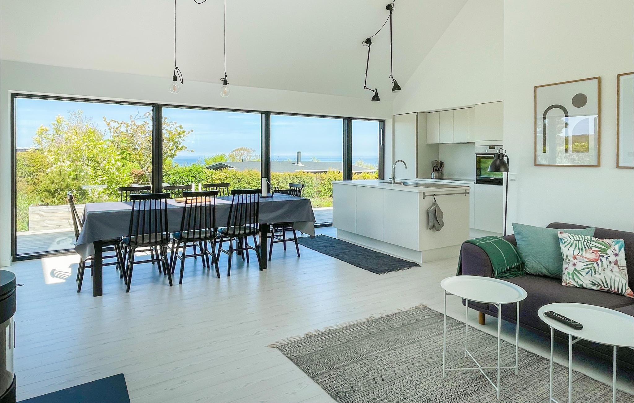 Flot og moderne feriehus i Sandvig med havudsigt, tæt på strand og naturskønne områder.
