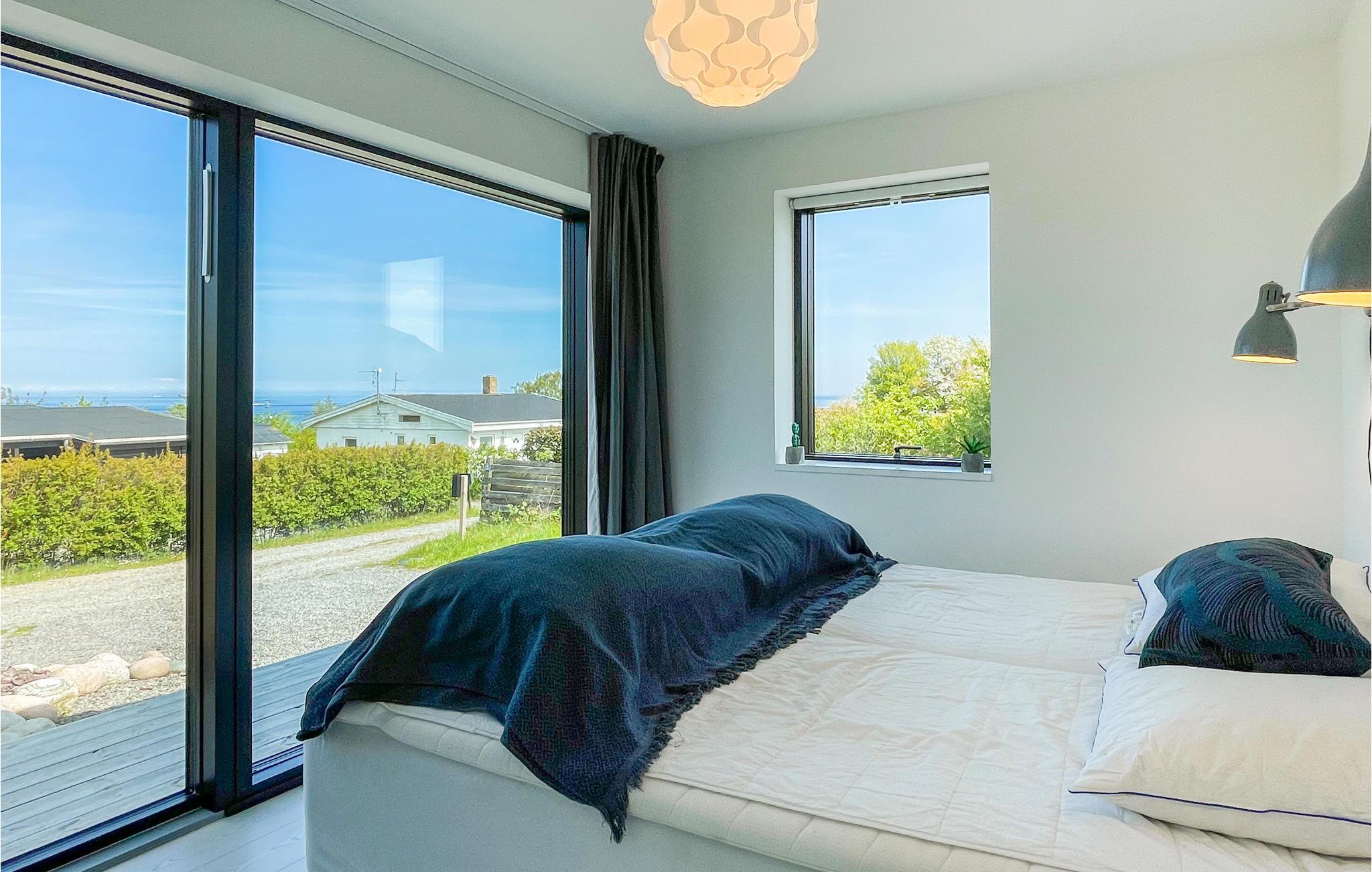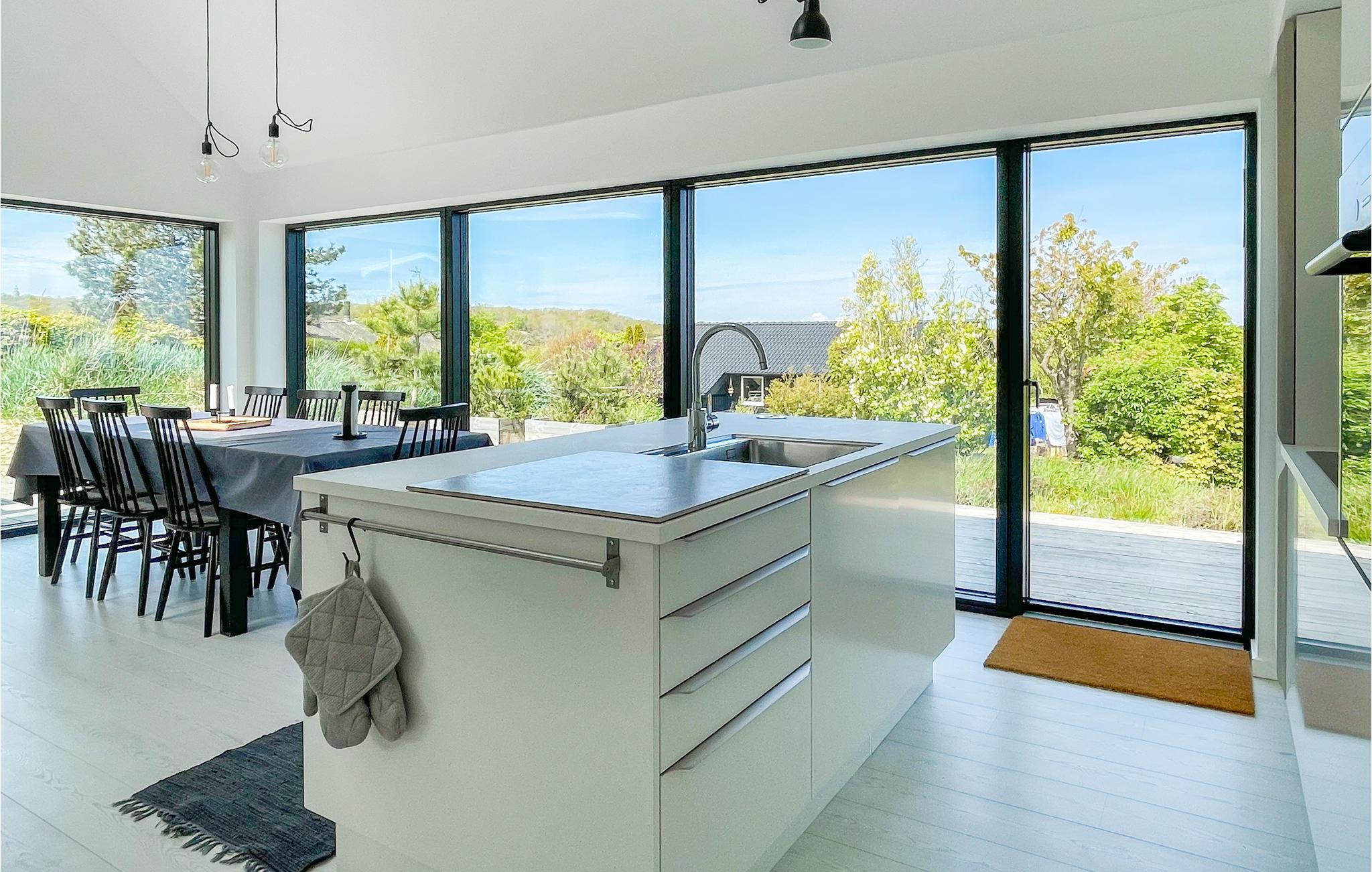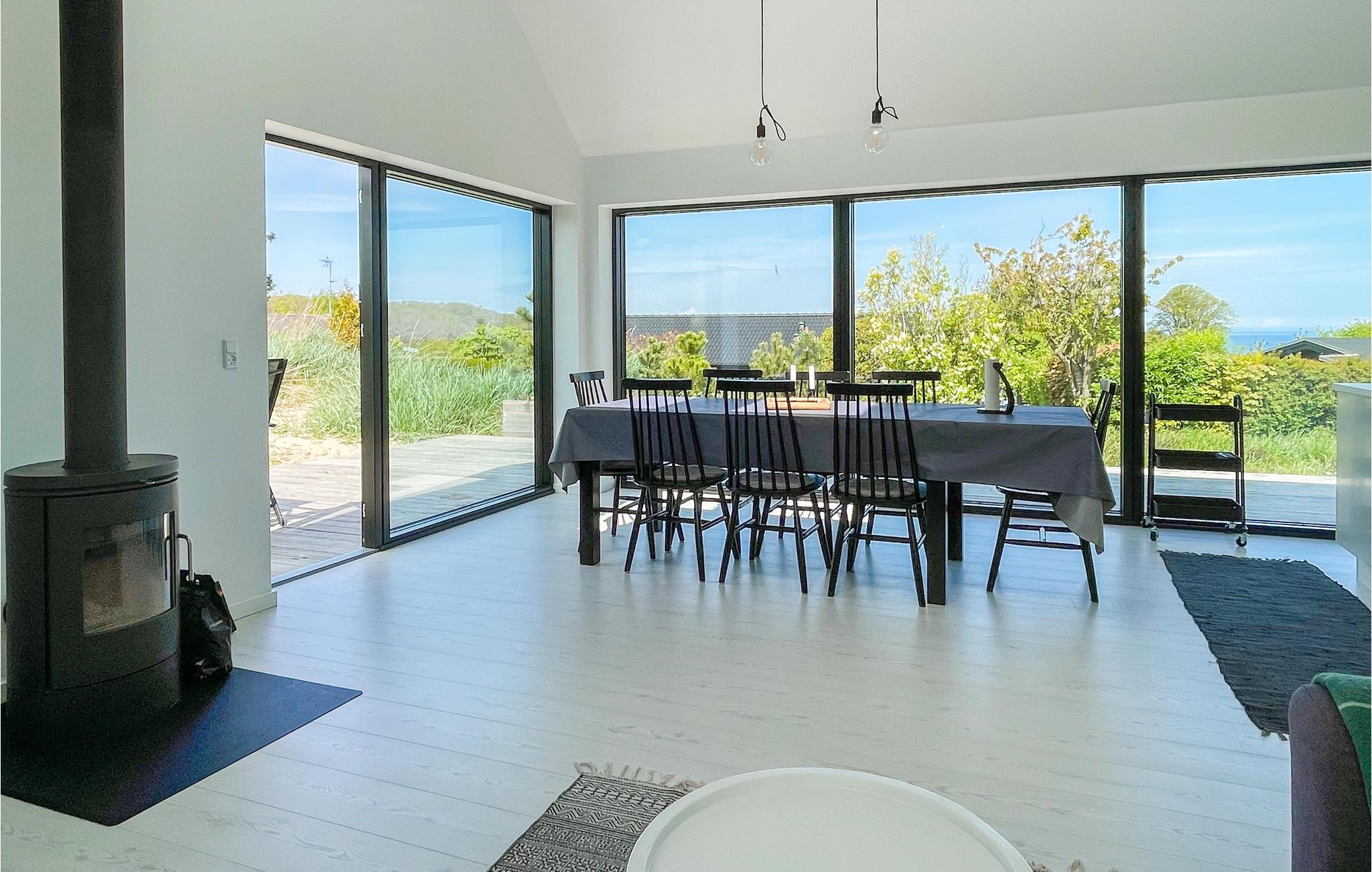 Flot og moderne feriehus i Sandvig med havudsigt, tæt på strand og naturskønne områder.