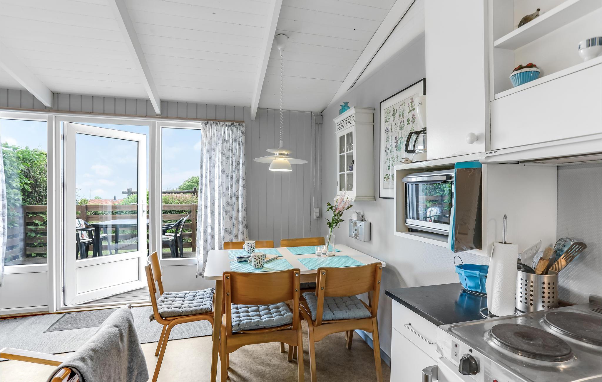 Velkommen til dette hyggelige sommerhus, der er velegnet til et par eller en børnefamilie. Husets hjerte er den kombinerede køkken og opholdsstue, hvor I kan slænge jer i komfortable møbler, se fjernsyn, høre radio og tilberede og nyde jeres feriemåltider. I stuen er der en dobbelt sovesofa.