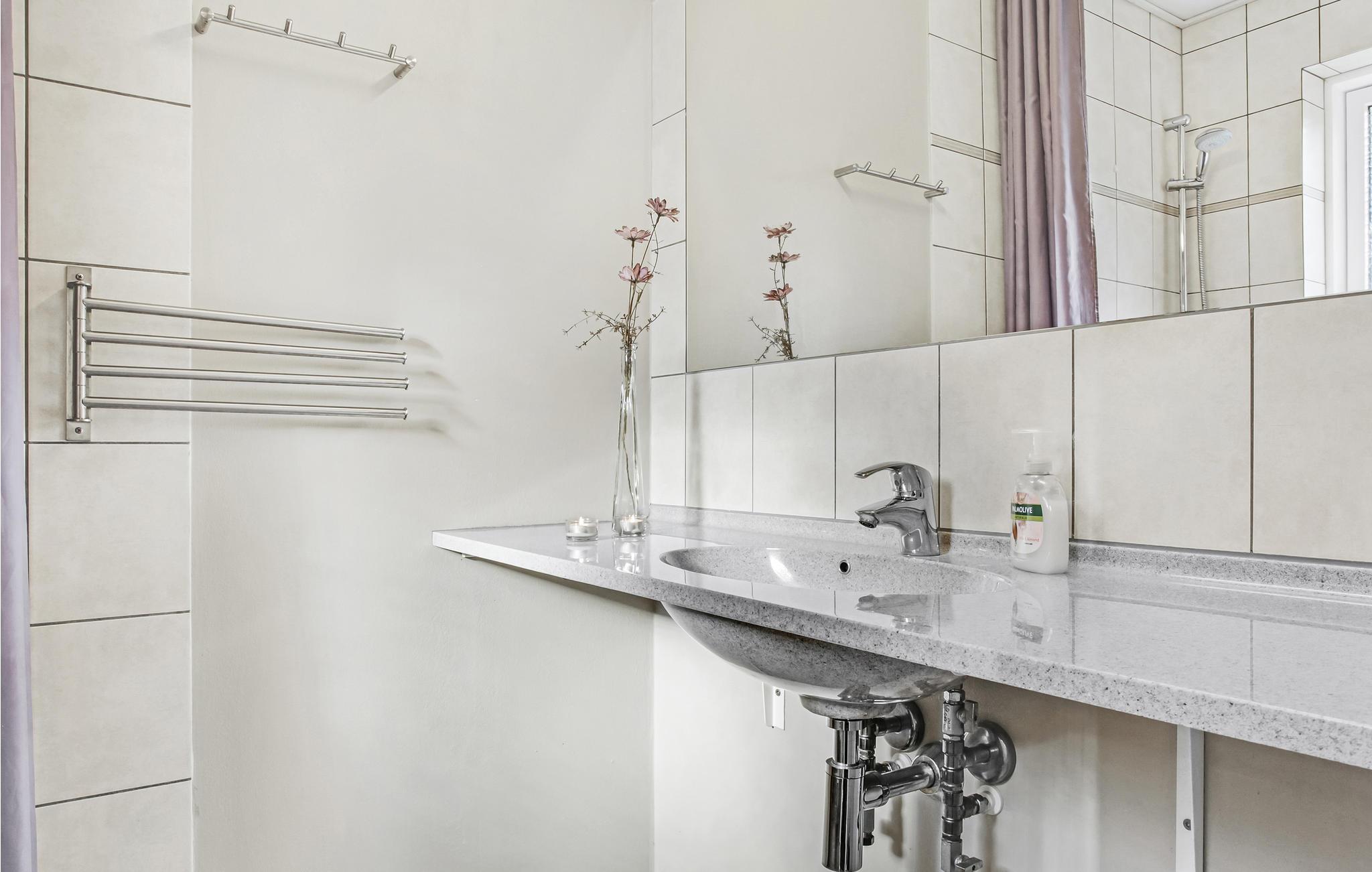 På begge sider af lokalet har I udgang til små terrasser med havemøbler, så I kan både nyde morgen- og aftensolen. Haven er til fælles brug, og her kan I også låne en grill, hvis I har lyst til at sidde "hjemme" en aften.
