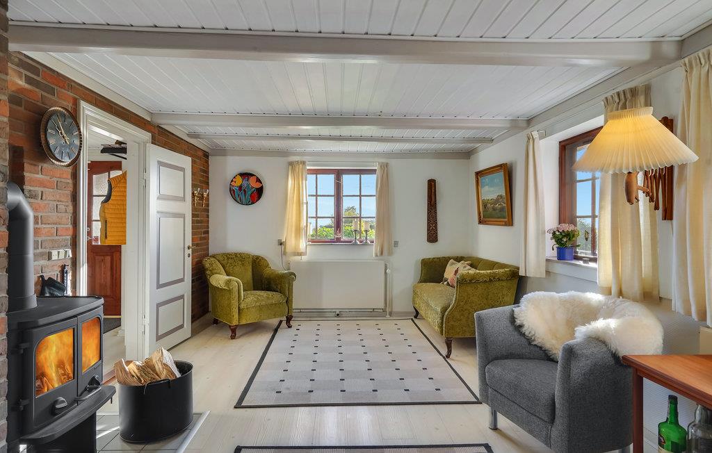 Dette charmerende feriehus ligger i et roligt, landligt område. De lyse, komfortabelt indrettede værelser strækker sig over to etager og byder på hyggelig, personlig indretning. Nyd at vågne op til smuk udsigt, flere soveværelser har udsigt over marker og vandet. Efter en dag i den friske luft kan I varme jer foran brændeovnen eller samles om et brætspil. I kan også nyde jeres tid på altanen eller på en af de overdækkede terrasser. Føl jer godt tilpas i de komfortable havemøbler, mens børnene leger på den indhegnede naturgrund. Fred og idyl præger dette smukke sted.
