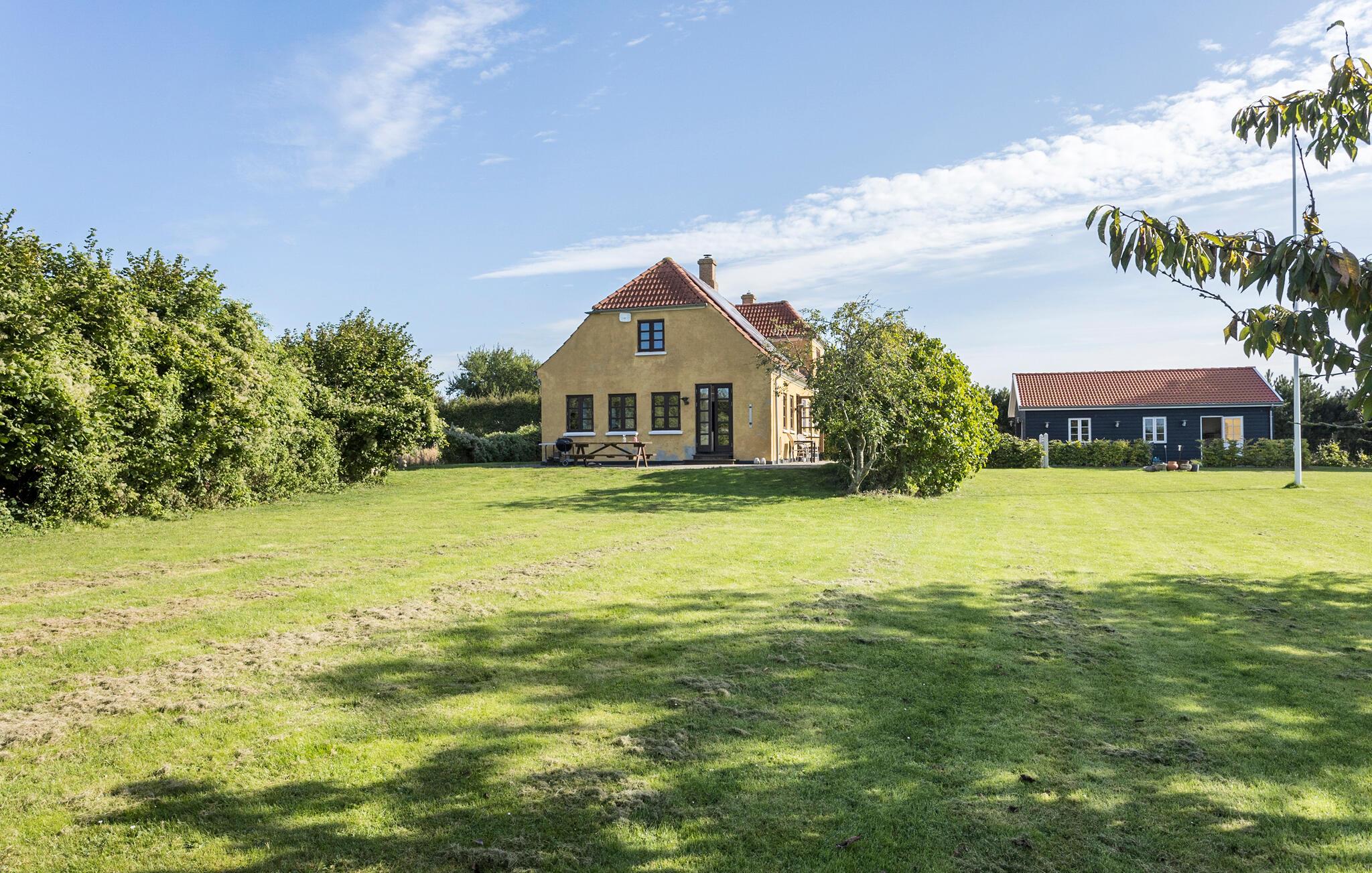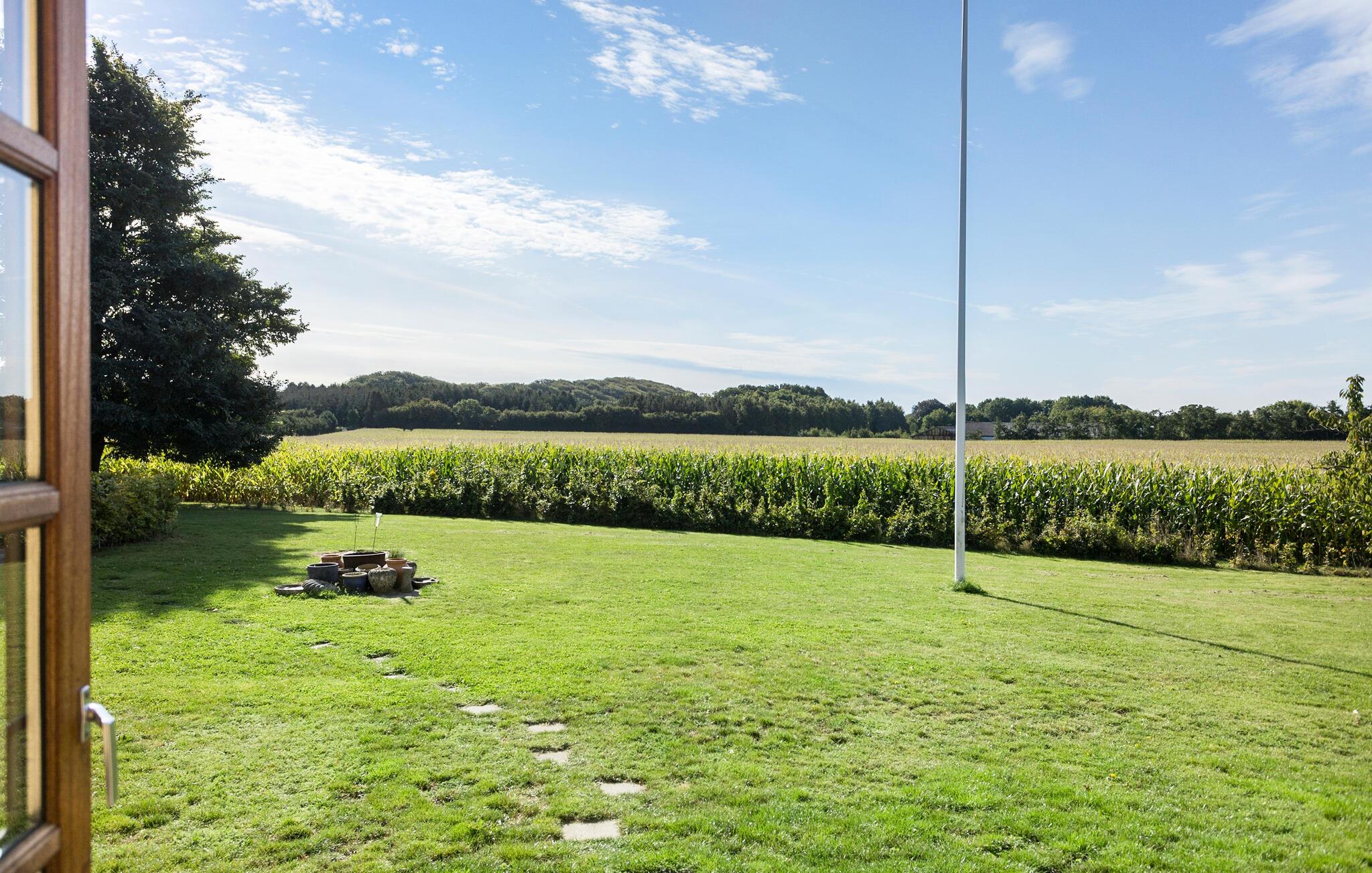 Familievenligt landhus på Langeland med spabad, stor have og smuk udsigt over marker.