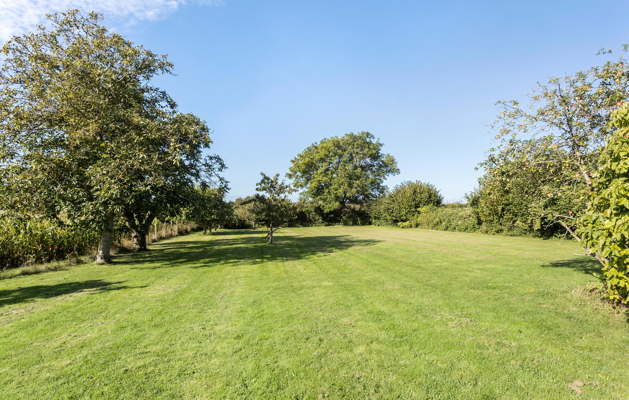 På en lun dag kan I tænde op i grillen og sætte jer ud på terrassen, som er flot indrammet af den grønne have. Den store naturgrund med græs og frugttræer deler I med rådyr og dådyr fra området.