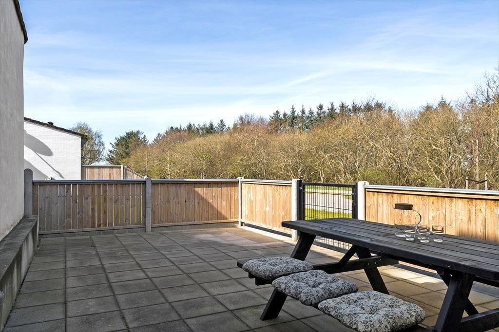 Til lejlighederne hører adskillelige terrasser hvor man i ro og mag kan nyde solen, hinandens selskab og en god kop kaffe. Størstedelen af terrasserne er indhegnet og derfor oplagt for børnefamilier og hundeelskere. Huset er beliggende på en stor grund med god parkering og en mindre græsplæne til hyggespil på de lune aftner. Ved indkørsel til lejligheden løber der en cykelsti, hvis man kører til højre, kan man følge den helt til Thorsminde. Kører man til venstre kommer man til Husby Klitplantage med både badesø og udkigspunkt. Man kan også følge cykelstien videre til byen Ulfborg.