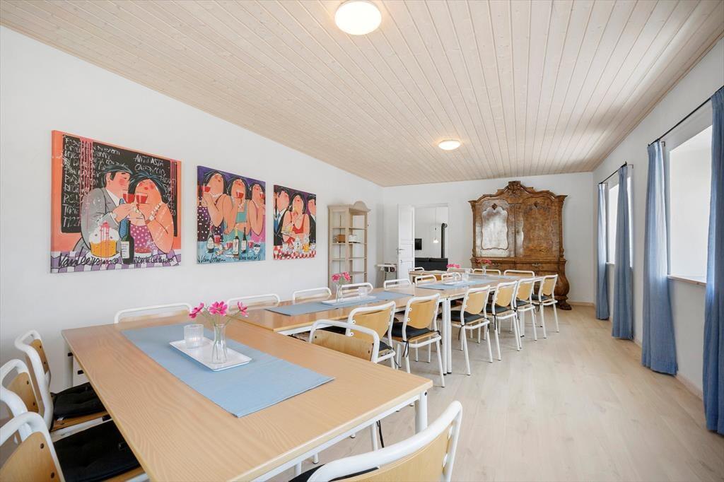 Et skønt rummeligt ferielejlighedskompleks til 26 personer. Ideelt til flere børnefamilier, ferier med familien eller til en spilleuge med vennerne. I bor hver for sig, og alligevel tæt på hinanden. Alle 5 lejligheder er lyse og hyggeligt indrettet med gode faciliteter. Der er tilhørende spisesal hvor alle kan nyde hinandens selskab til en hyggelig middag eller en dyst i diverse spil. Det er tilladt at medbringe max 5 hunde i lejlighedskomplekset.