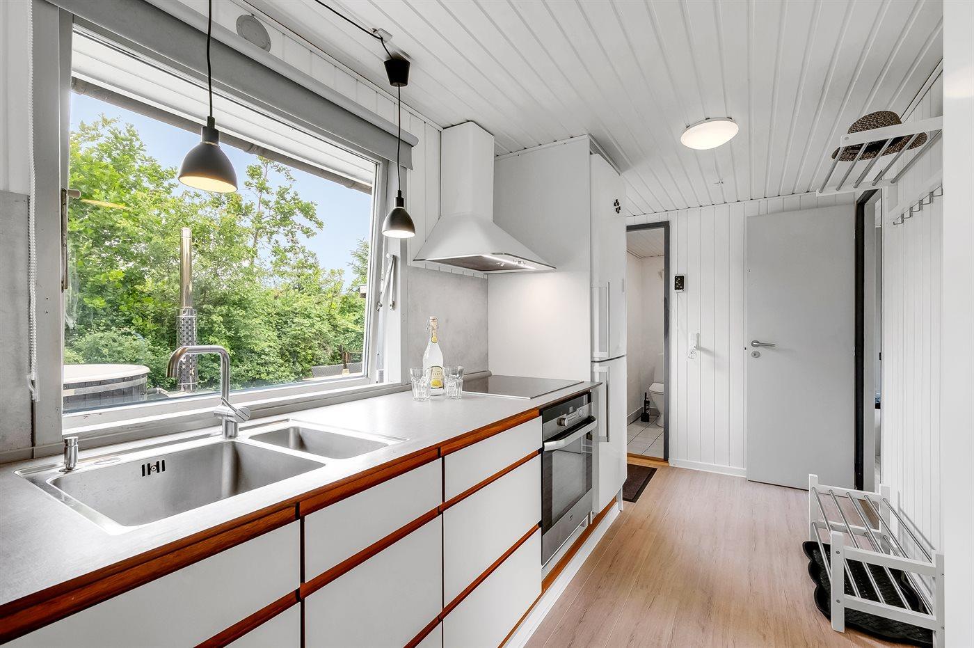 Køkkenet er udstyret med 1 køleskab. Der er 4 induktionskogeplader, varmluftovn, mikrobølgeovn samt opvaskemaskine.