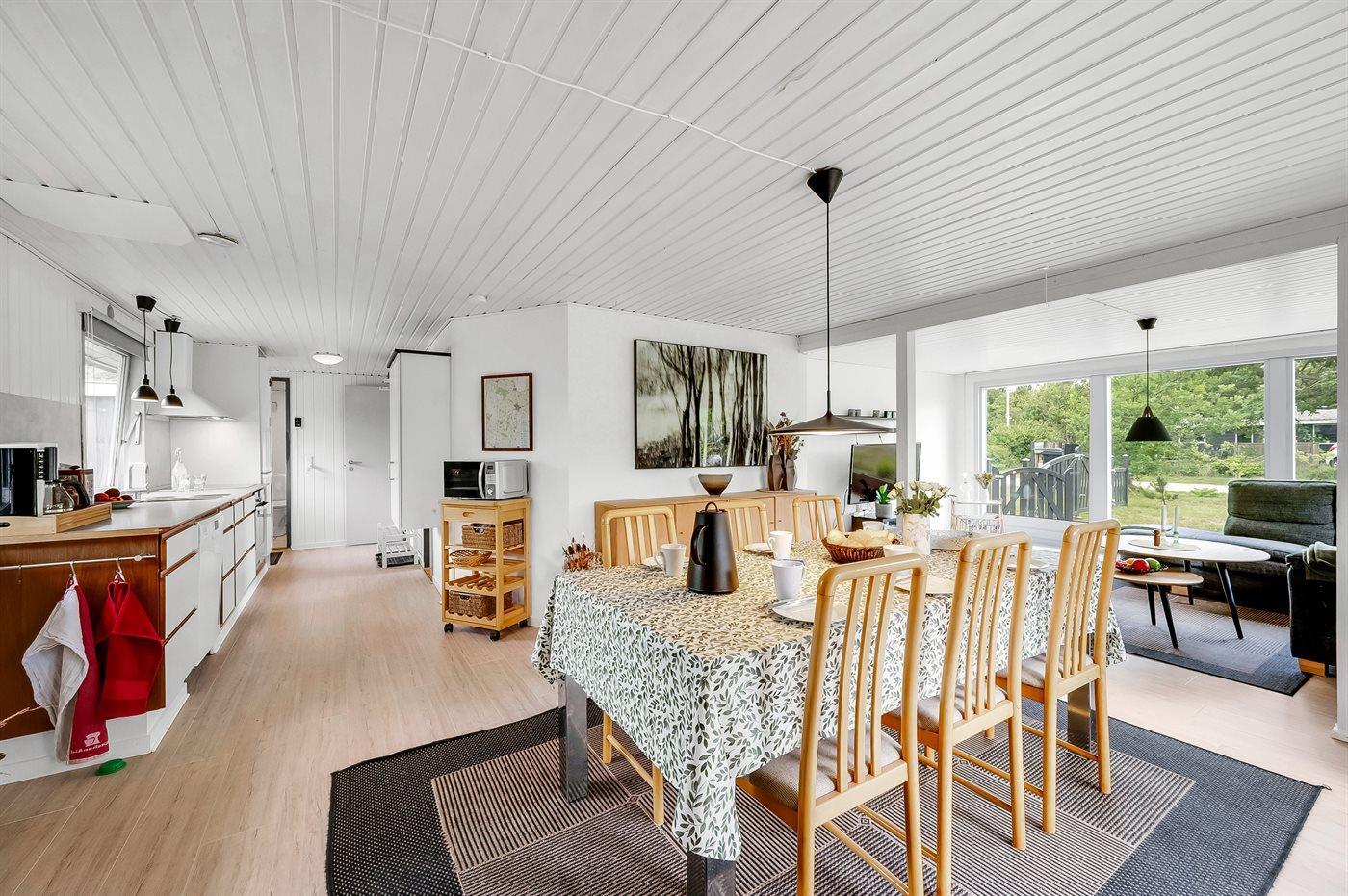 Ferieboligen er beliggende på en 993 m² stor naturgrund. Der er 5000 m til havet. Der er 500 m til fjorden. Nærmeste forretning er beliggende i en afstand af 3000 m. Til ferieboligen hører 100 m² terrasseareal. Desuden er der 10 m² overdækket terrasse. Der er redskabsrum. Der er garage til rådighed. Parkering ved ferieboligen.