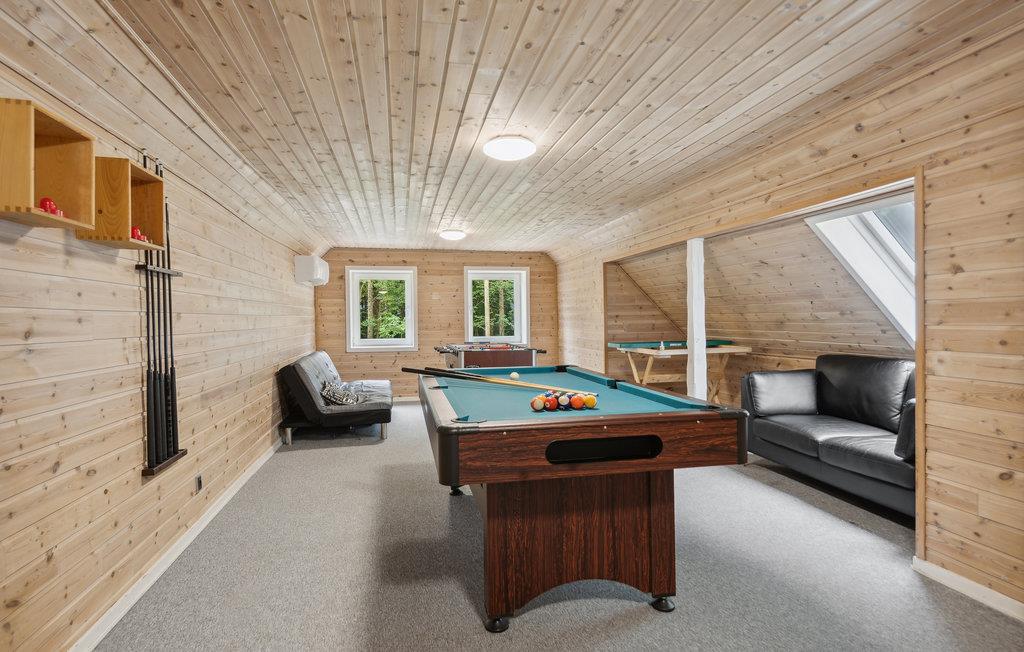 Der er installeret en pillebrændeovn, hvilket gør at udgifterne til opvarmning minimeres. I aktivitetsrummet kan I dyste ved poolbordet i airhockey samt bordfodbold. Til huset hører en lukket, delvis overdækket gårdhave med bordtennis samt flere spil.