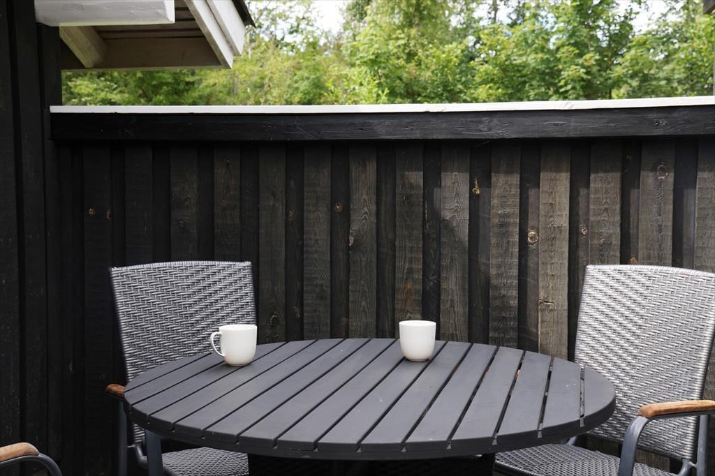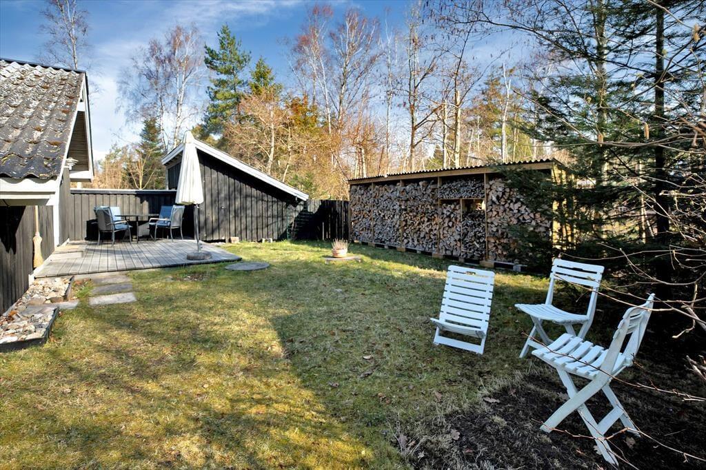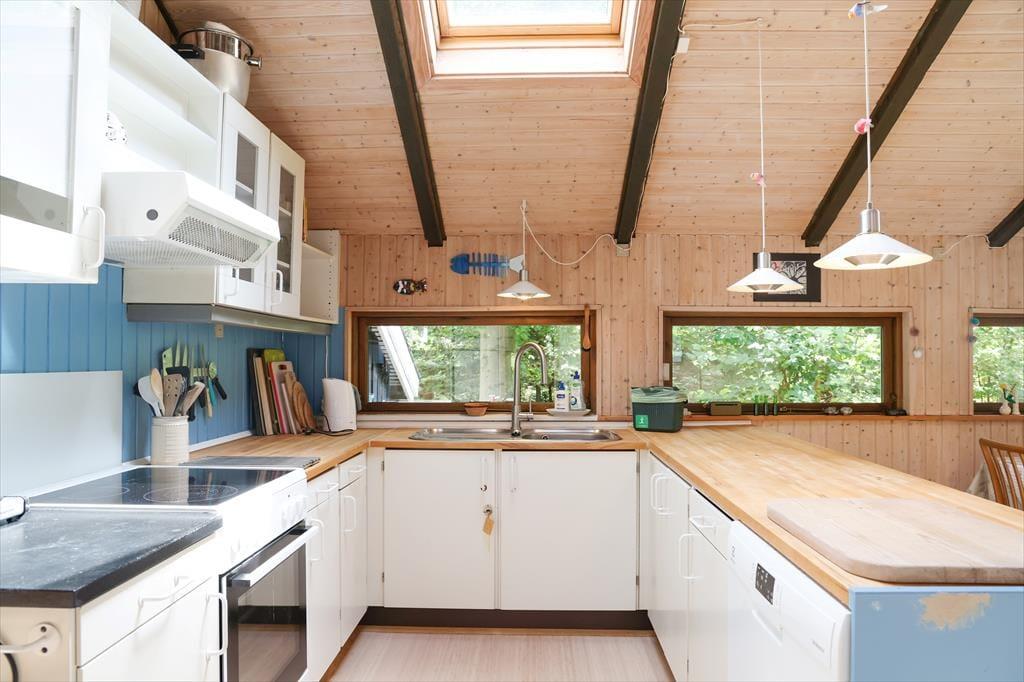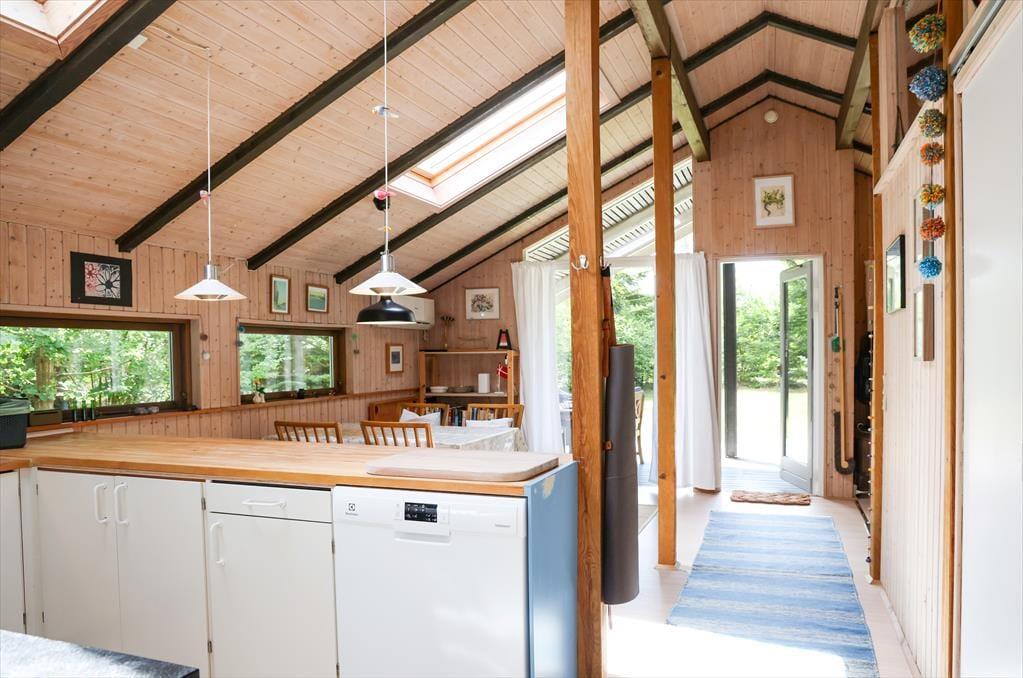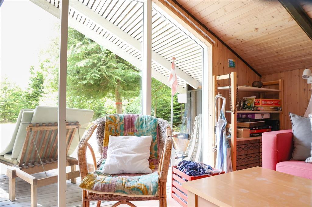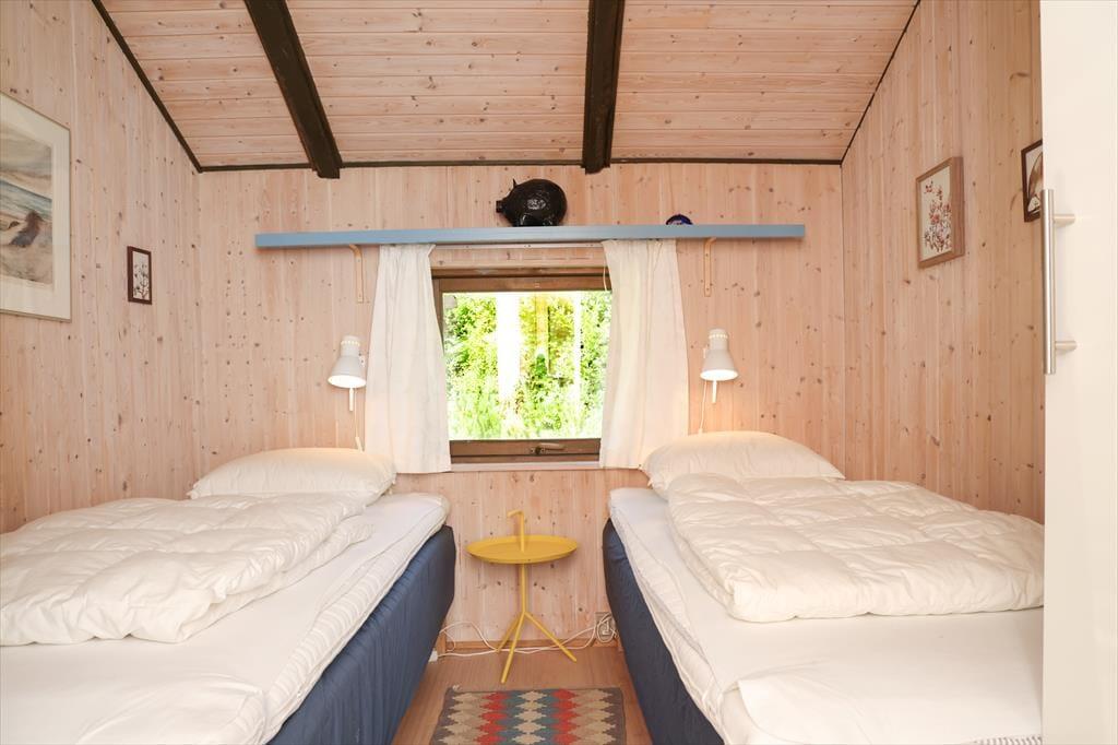 Sommerhuset er indrettet med en dejlig stue. I forbindelse med stuen er der et hyggeligt, åbent køkken hvor I kan hjælpes om at tilberede frokosten. Der er badeværelse med brus og et dejligt soveværelse samt et ekstra værelse med enkeltsenge. Husets terrasse består af en overdækket og en åben afdeling, her kan der grilles, nydes et glas vin eller solen fra morgen til aften. I det tilhørende skur er der vaskemaskine. Helt ideelt til dig der bare vil nyde livet.