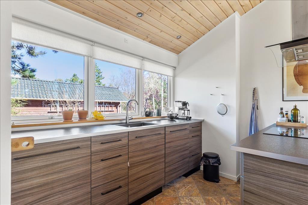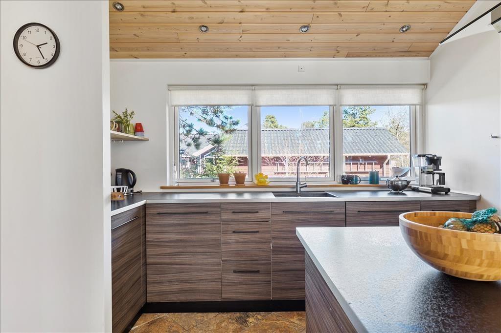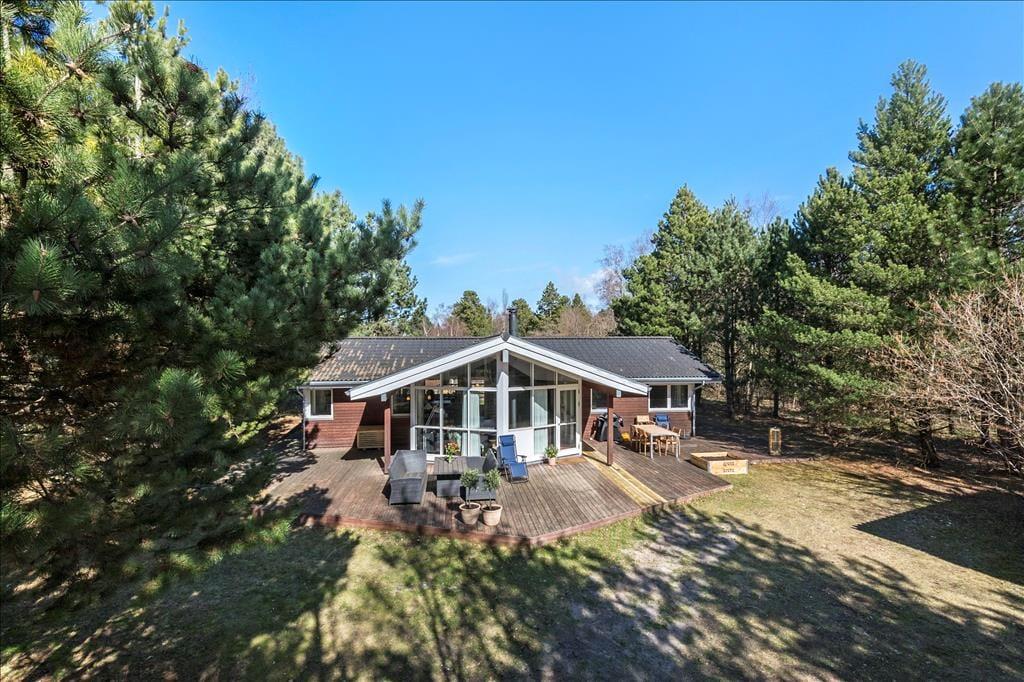 Rummeligt feriehus som er velegnet til 2 familier. Stor stue med brændeovn og godt lysindfald fra de store vinduer. Åbent køkken med opvaskemaskine og mikroovn og god plads til at fremtrylle lækre feriemiddage. Huset indeholder 2 badeværelser med smukke fliser, der skaber middelhavsstemning. Det ene badeværelse indeholder SPA og det andet en sauna. Der er 4 gode soveværelser med henholdsvis 2 dobbeltsenge, 1 enkeltseng og en køjeseng samt skabsplads til tøj. I bryggerset finder du både vaskemaskine og tørretumbler. Fra stuen er der udgang til den hyggelige træterrasse, hvor du kan grille, slappe af og betragte det rige dyreliv.