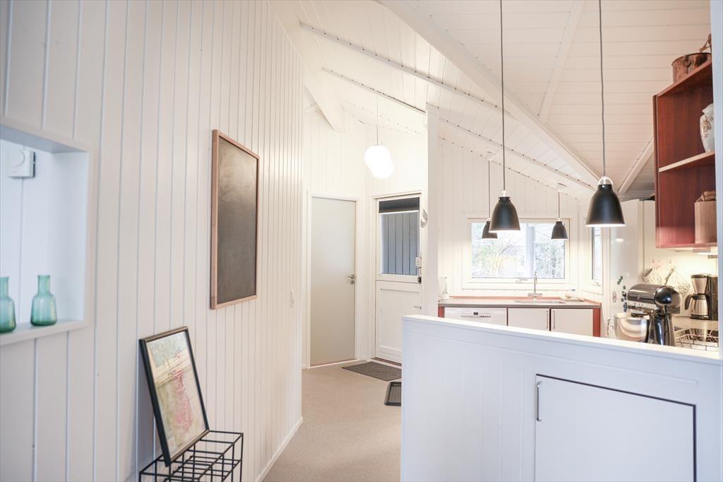 I sommerhuset, vil du med det samme få følelsen af at være velkommen, alt fremstår lyst og særdeles indbydende. Du vil hurtigt få skuldrene ned og mærke, at det endelig er tid til ferie. I den dejlige stue, der er placeret i forbindelse med det åbne køkken, kan I samles omkring spisebordet til et brætspil eller en god frokost. Fra terrassen kan du opleve den fantastiske natur og være heldig at se et rådyr gå forbi, mens I deler en flaske vin, efter at børnene er lagt i seng.