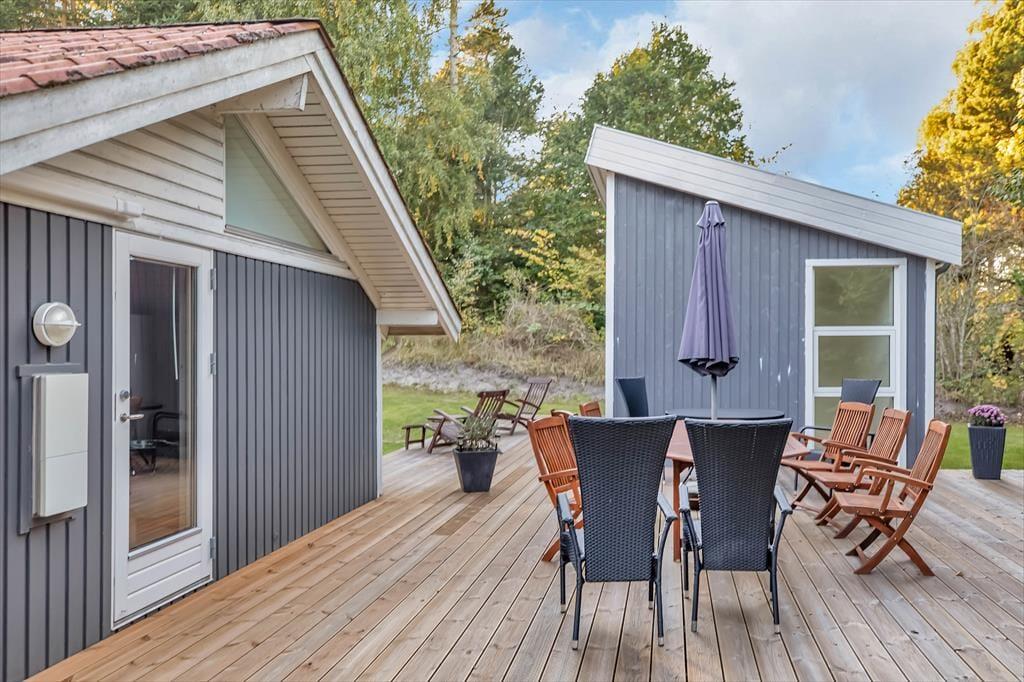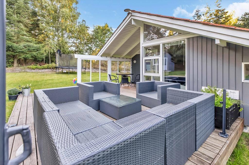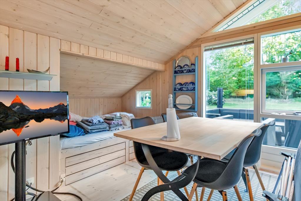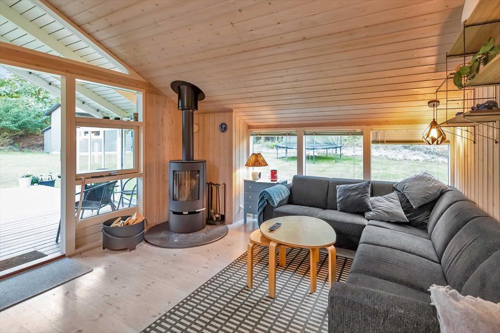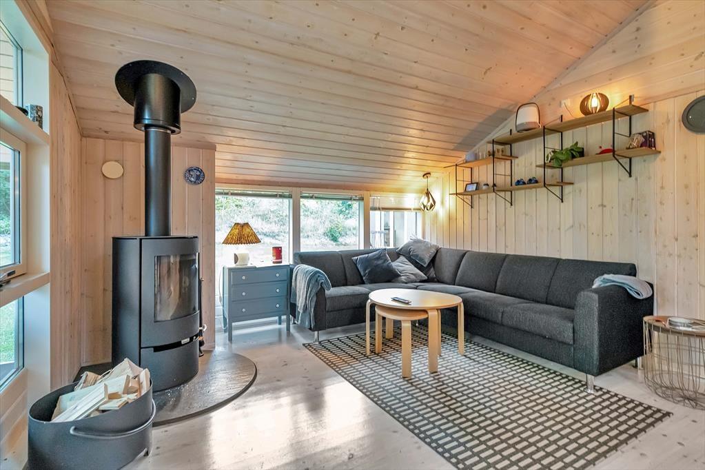 Sommerhuset er indrettet med skøn stue, her er der mulighed for både afslapning og hygge. Dejligt åbent køkken. Lækkert badeværelse med brus samt et godt soveværelse med dobbeltseng. I stuen er der en alkove med plads til to personer. Husets skønne terrasse er opdelt i flere afdelinger, både en overdækket og flere åbne, her kan I nyde solen fra morgen til aften mens børnene leger i haven.