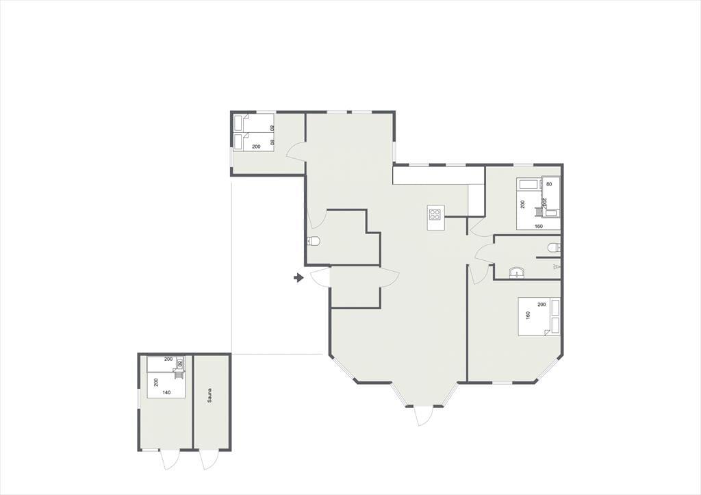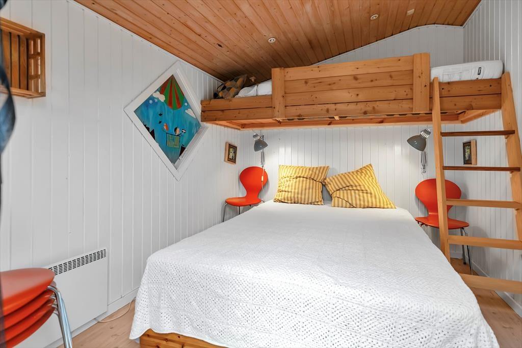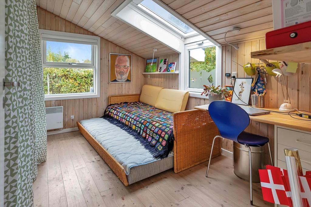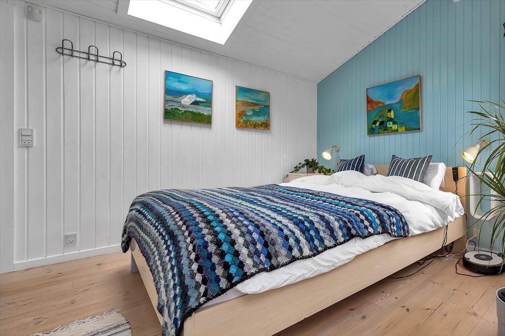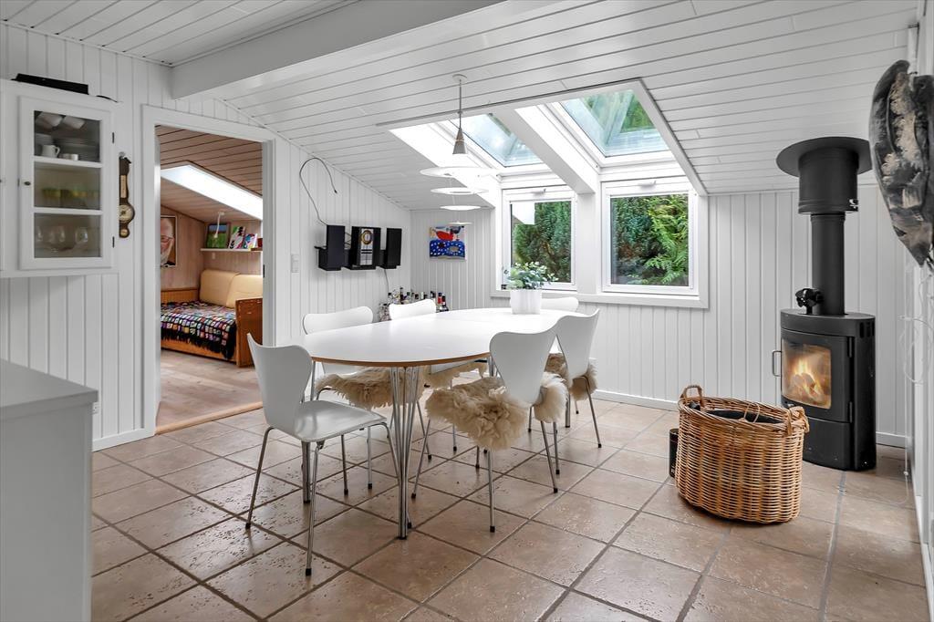 Sommerhusets hjerterum er den store dagligstue med stor tv-pakke og hurtigt internet og ligger i forbindelse med det åbne køkken. I køkkenet er der plads nok til at I kan hjælpes om tilberedningen af en god frokost og her kan du bl.a. også få friske isterninger til din drink fra det amerikanske køleskab. Der er også mulighed for at sætte sig og få en god snak ved spisebordet eller spille et hyggeligt brætspil. Der er et dejligt badeværelse med brus samt gæstetoilet. I det tilhørende anneks er der ud over et skønt soveværelse også en dejlig sauna, til fri afbenyttelse.