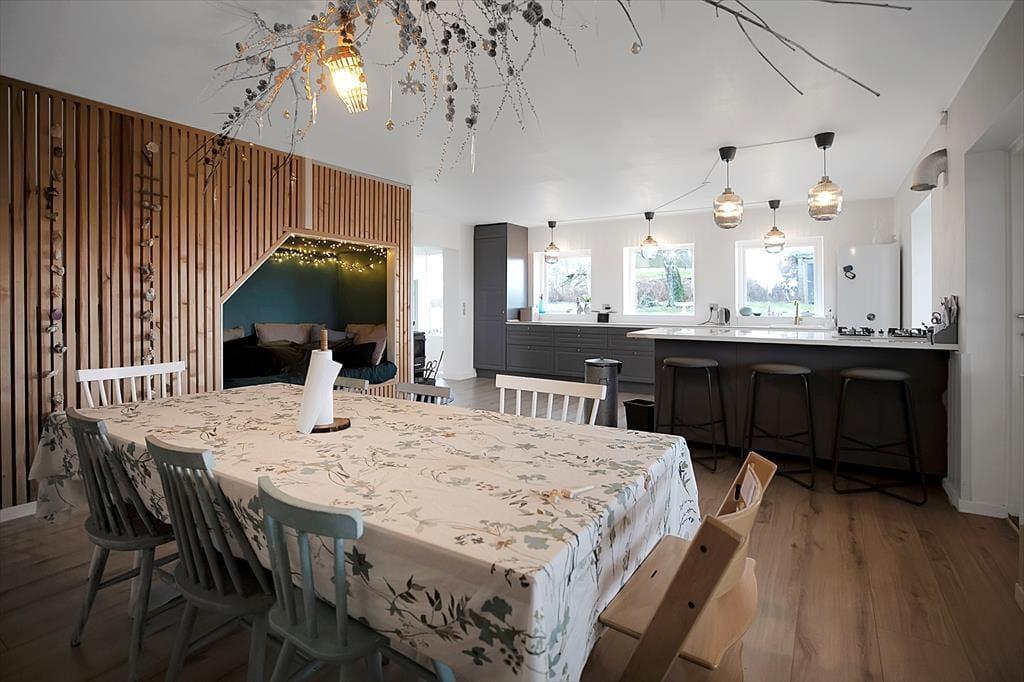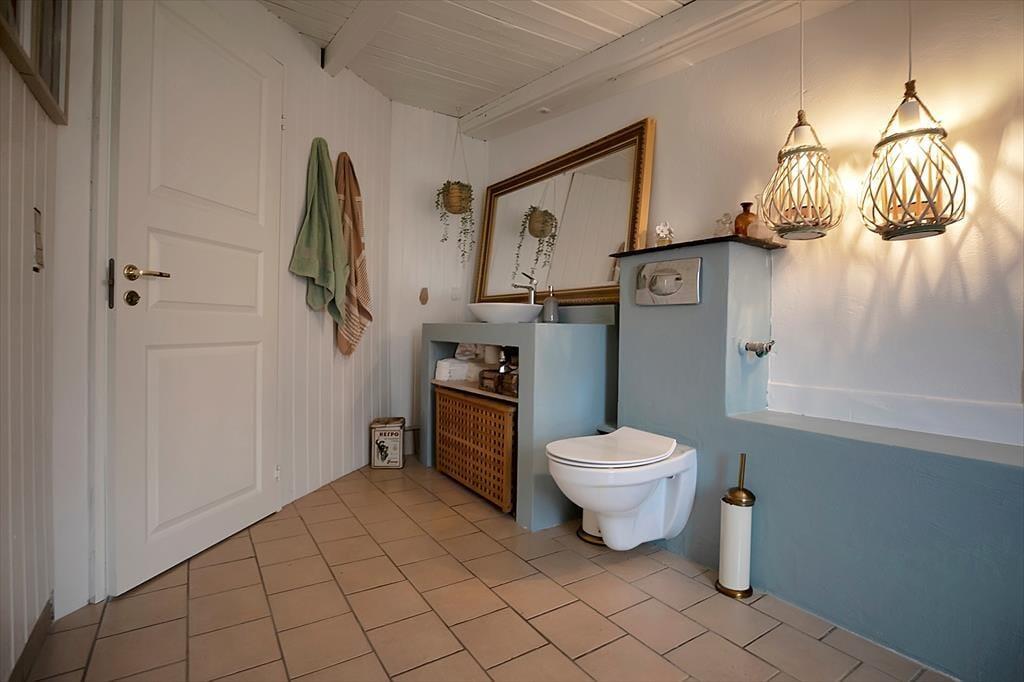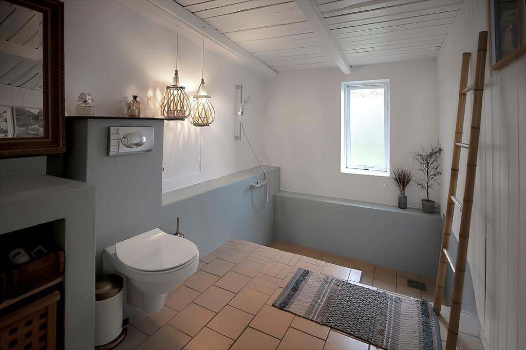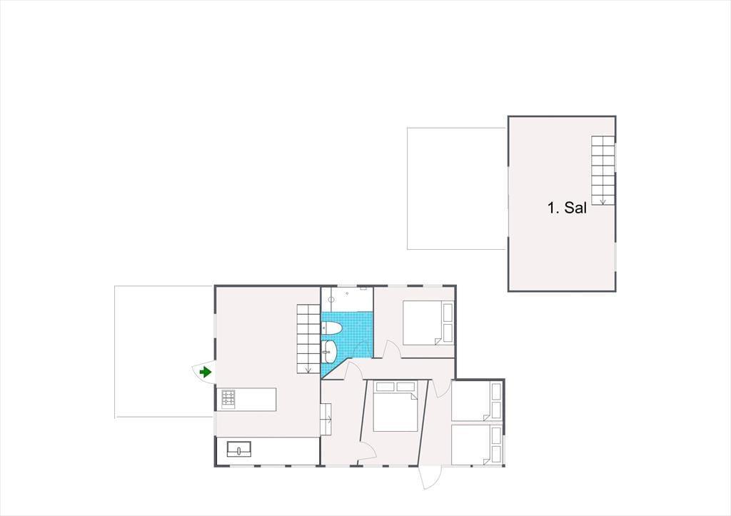 Huset er i 2 plan, i stueplan er der et stort køkken-alrum, her er der både mulighed for at hjælpes med at tilberede en god frokost at tage jer et slag kort. Der er tre dejlige soveværelser, de to med dobbeltseng i hver og det tredje med to dobbeltsenge. I stueplan finder I ligeledes husets badeværelse. Fra køkken-alrum er der adgang til en særdeles hyggelig overdækket terrasse. På 1. sal er der en dejlig stue og fra stuen udgang til husets fantastiske tagterrasse, her kan du både nyde solen, udsigten og måske et godt glas vin.